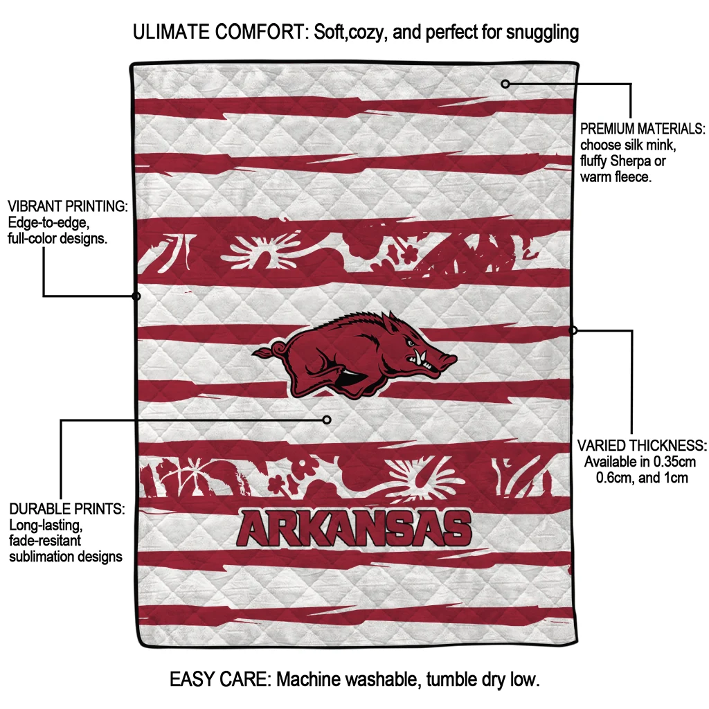 The Custom Arkansas Razorbacks Layered Florals Red White Quilt Blanket is more than a blanket—it’s everyday comfort, thoughtfully made. Crafted from premium quilting fabric with a soft microfiber touch, it offers a smooth hand-feel and lasting coziness. Layered quilting with a cotton-filled core provides adaptable warmth across seasons while maintaining a clean, tailored look on your bed or sofa.