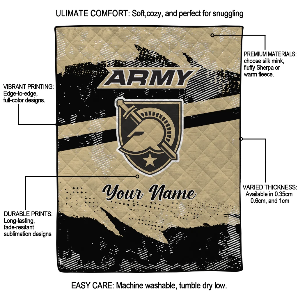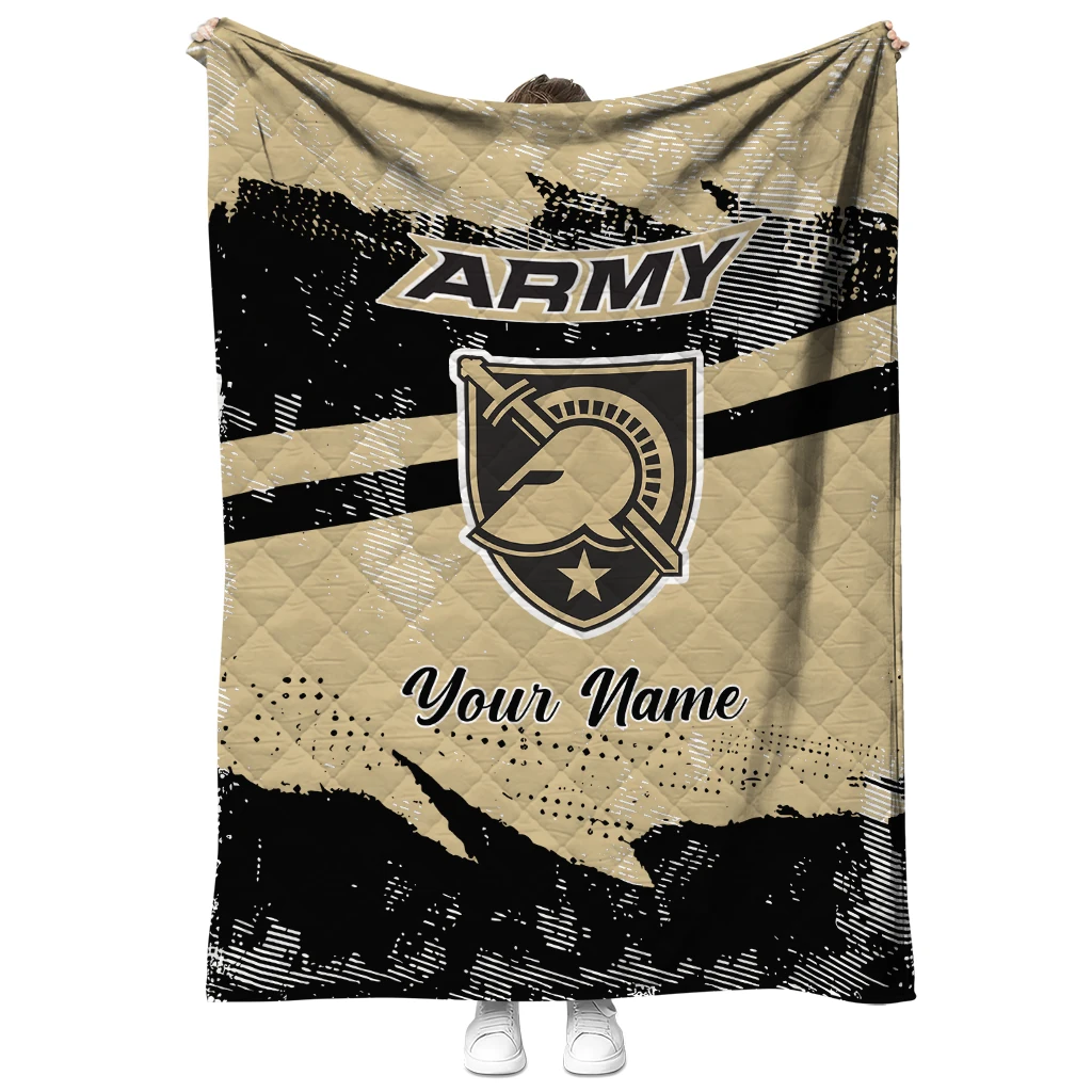 Custom Army Black Knights Brushstroke Layers Gold Quilt Blanket