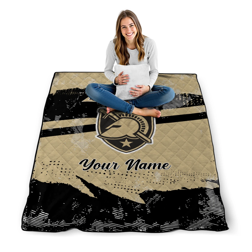 Wrap yourself in warmth and pride with the Custom Army Black Knights Brushstroke Layers Gold Quilt Blanket from the Army Black Knights Blankets collection at Yes That Blanket. Made from 100% premium quilting-weight polyester blended with a touch of microfiber, this quilt offers a smooth, soft finish you’ll love. Choose between two quilting styles—Stipple or Diagonal—and enjoy the comfort of a cotton-filled layer inside that adds extra coziness for every season. The border is available in classic black or white, giving your design a clean, timeless edge.