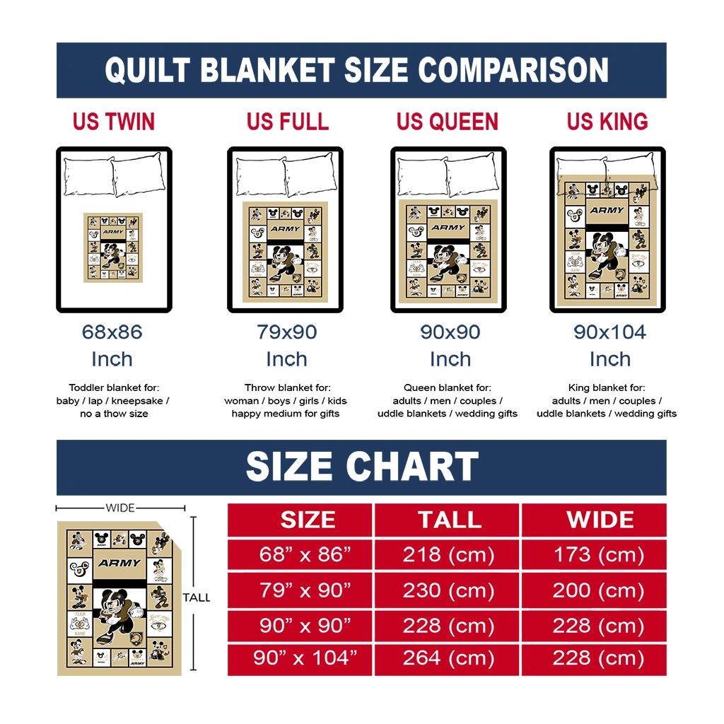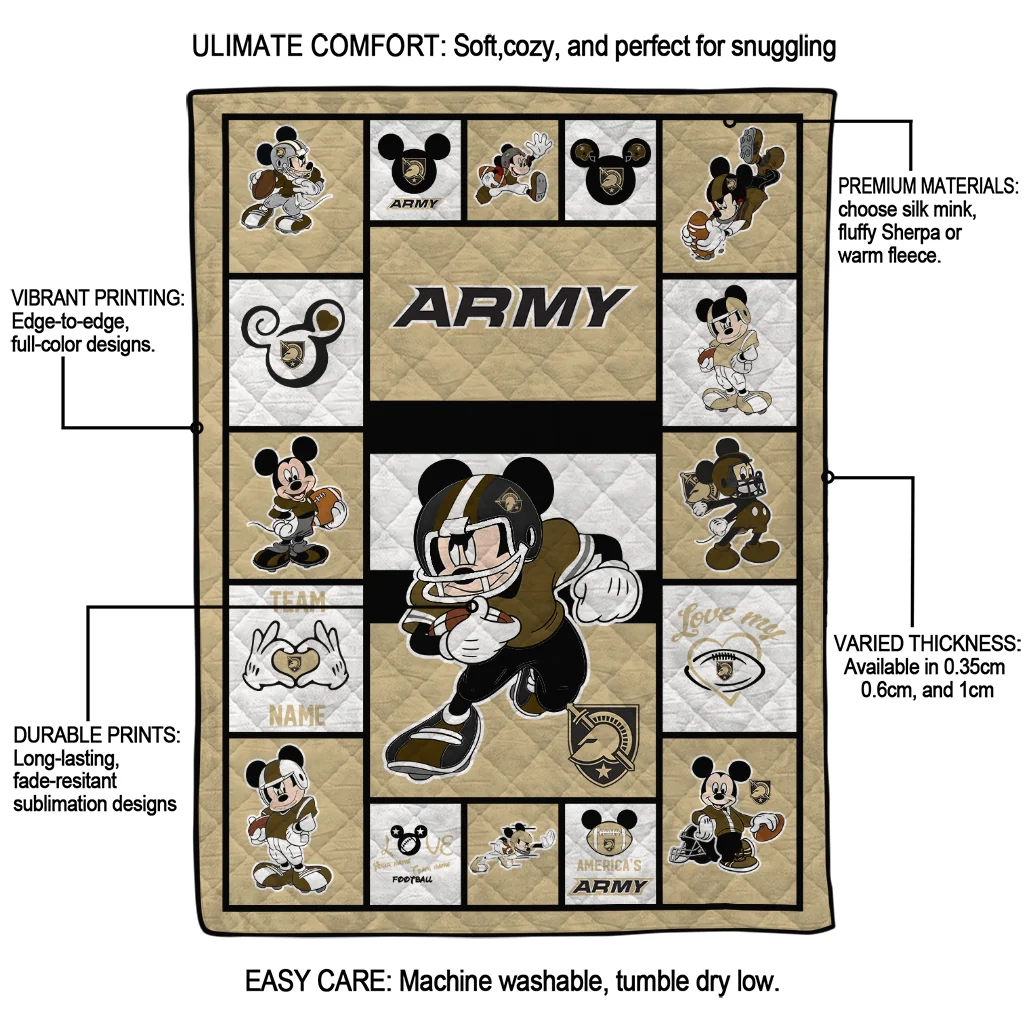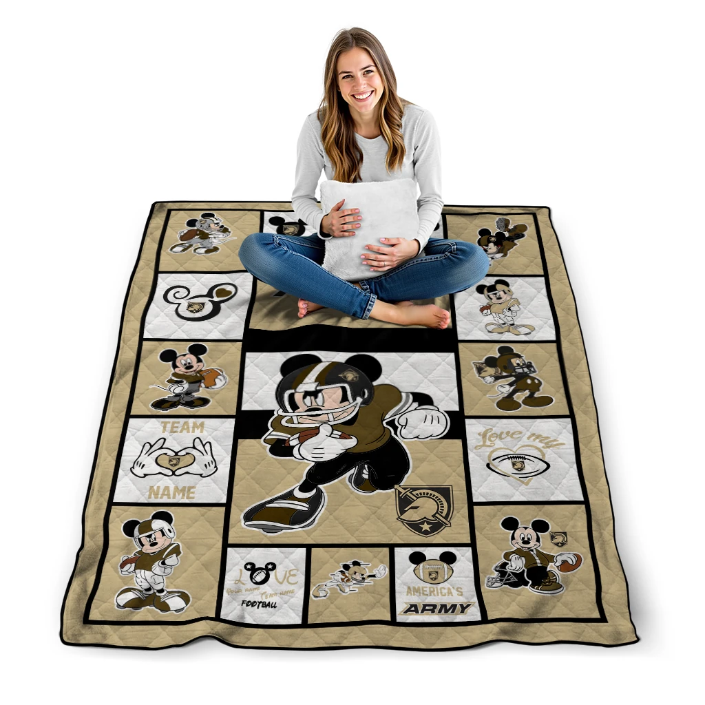 Custom Army Black Knights Mickey Crimson Gold White Quilt Blanket