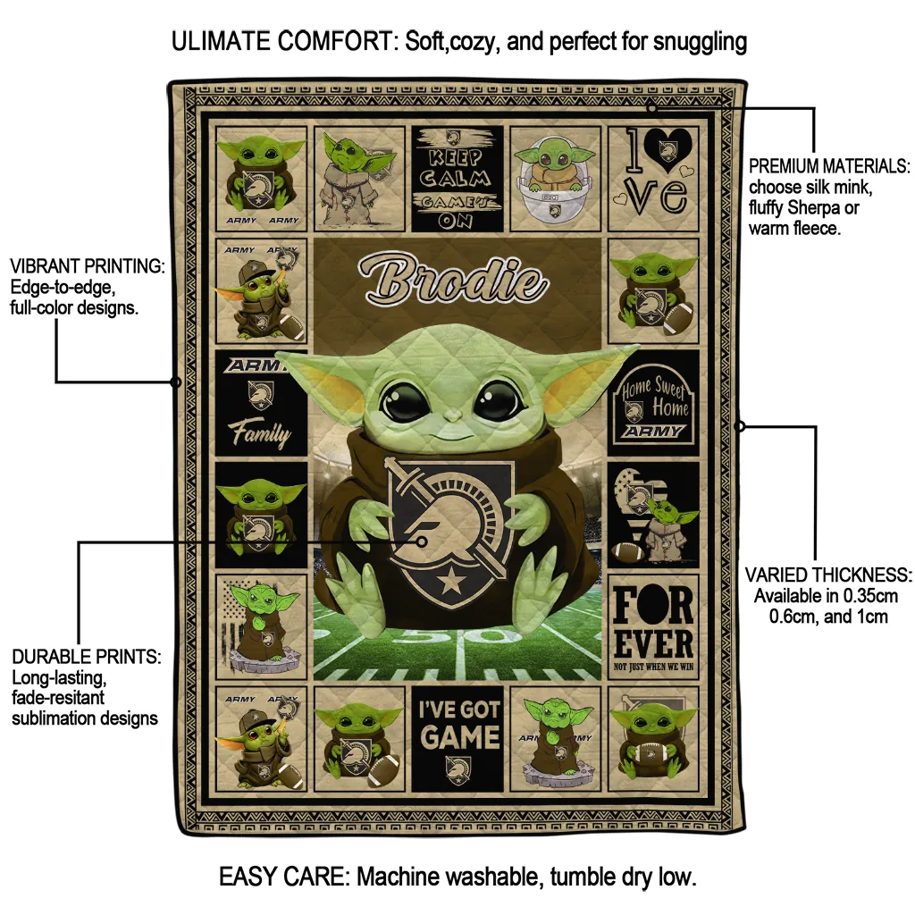 Custom Army Black Knights Yody Baby Pattern Gold Quilt Blanket