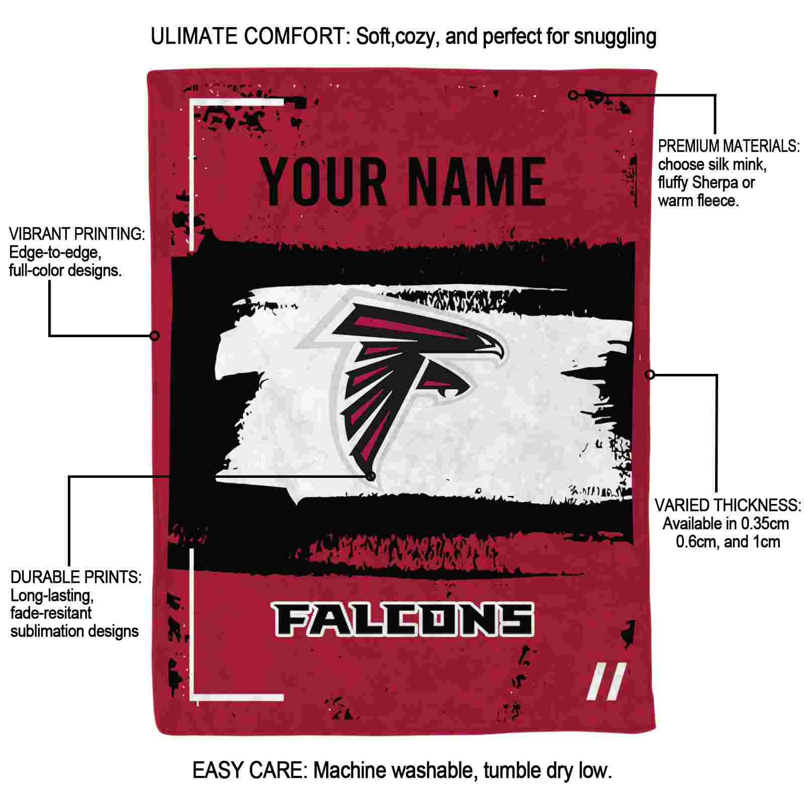 Without a doubt, the Custom Atlanta Falcons Paint Strokes Red White Blanket from Atlanta Falcons Blankets collection is offering true fans a chance to showcase passion in a cool way. Personalize it with your favorite team’s logo or a meaningful name to make it uniquely yours. Isn’t that great? The full-color print ensures vibrant, edge-to-edge designs, bringing your sports enthusiasm to life!