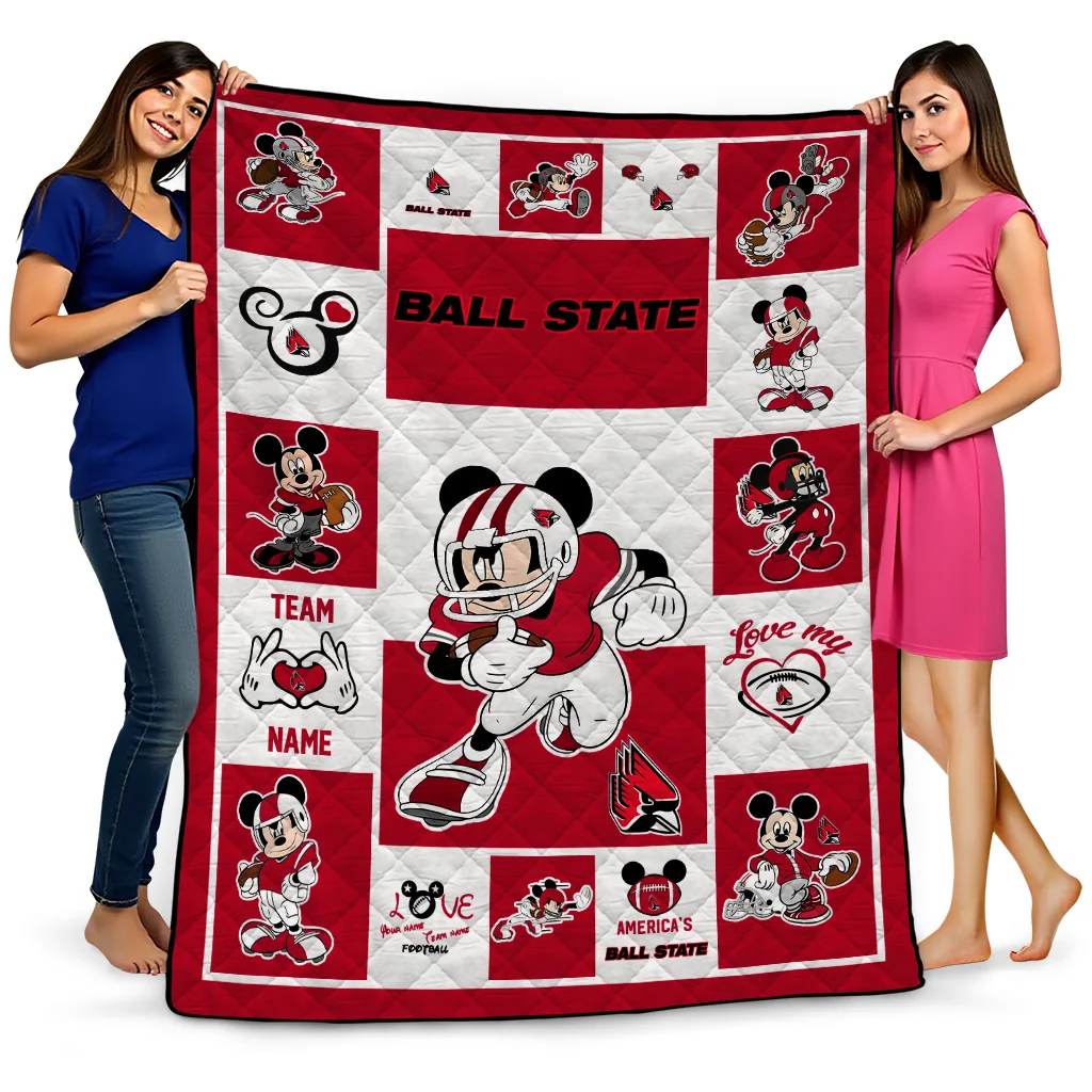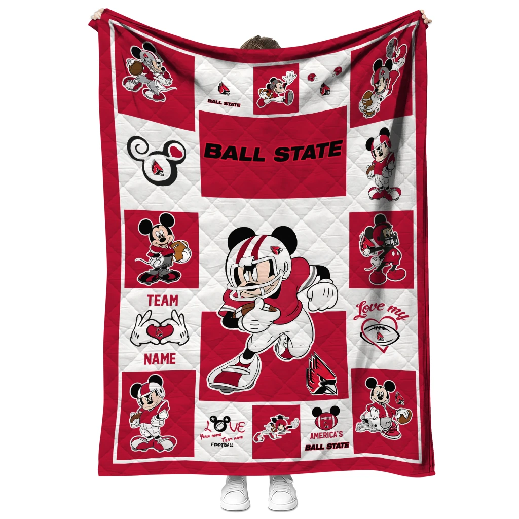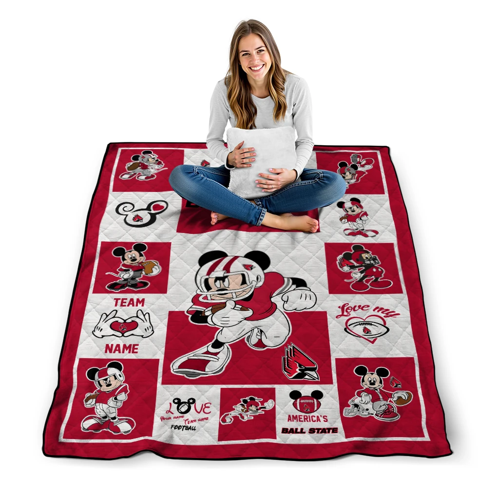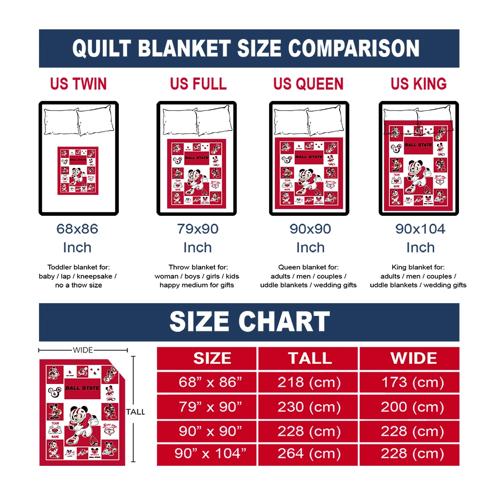 Wrap yourself in warmth and pride with the Custom Ball State Cardinals Mickey Crimson Red White Quilt Blanket from the Ball State Cardinals Blankets collection at Yes That Blanket. Made from 100% premium quilting-weight polyester blended with a touch of microfiber, this quilt offers a smooth, soft finish you’ll love. Choose between two quilting styles—Stipple or Diagonal—and enjoy the comfort of a cotton-filled layer inside that adds extra coziness for every season. The border is available in classic black or white, giving your design a clean, timeless edge.