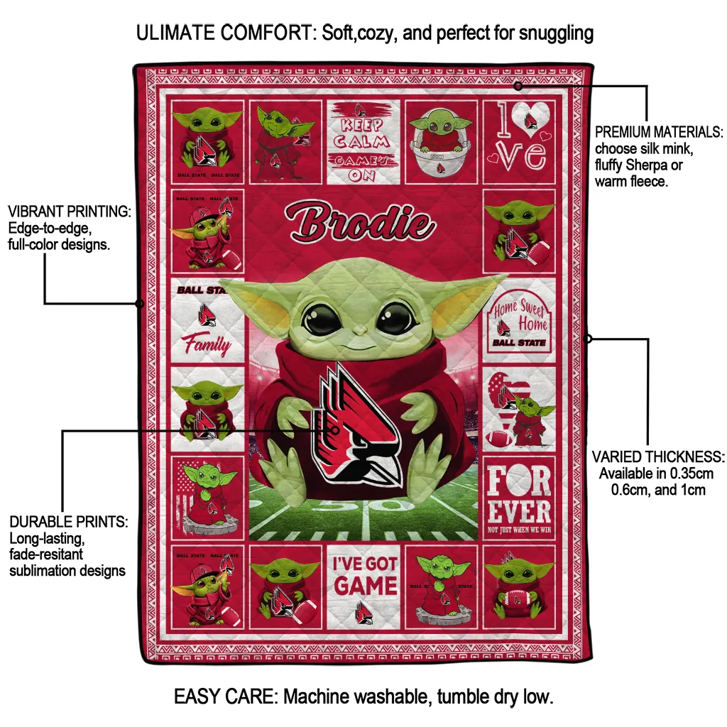 Wrap yourself in warmth and pride with the Custom Ball State Cardinals Yody Baby Pattern Red Quilt Blanket from the Ball State Cardinals Blankets collection at Yes That Blanket. Made from 100% premium quilting-weight polyester blended with a touch of microfiber, this quilt offers a smooth, soft finish you’ll love. Choose between two quilting styles—Stipple or Diagonal—and enjoy the comfort of a cotton-filled layer inside that adds extra coziness for every season. The border is available in classic black or white, giving your design a clean, timeless edge.