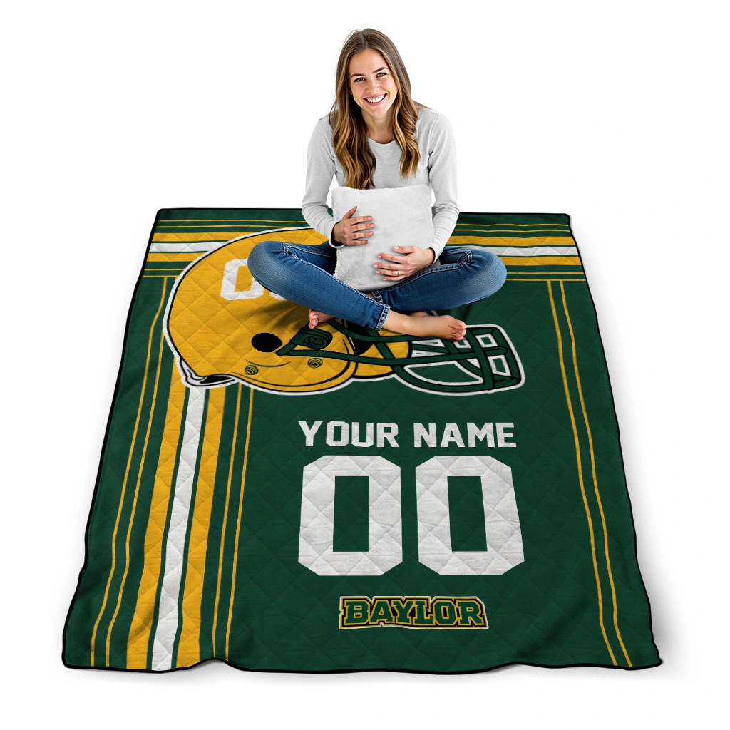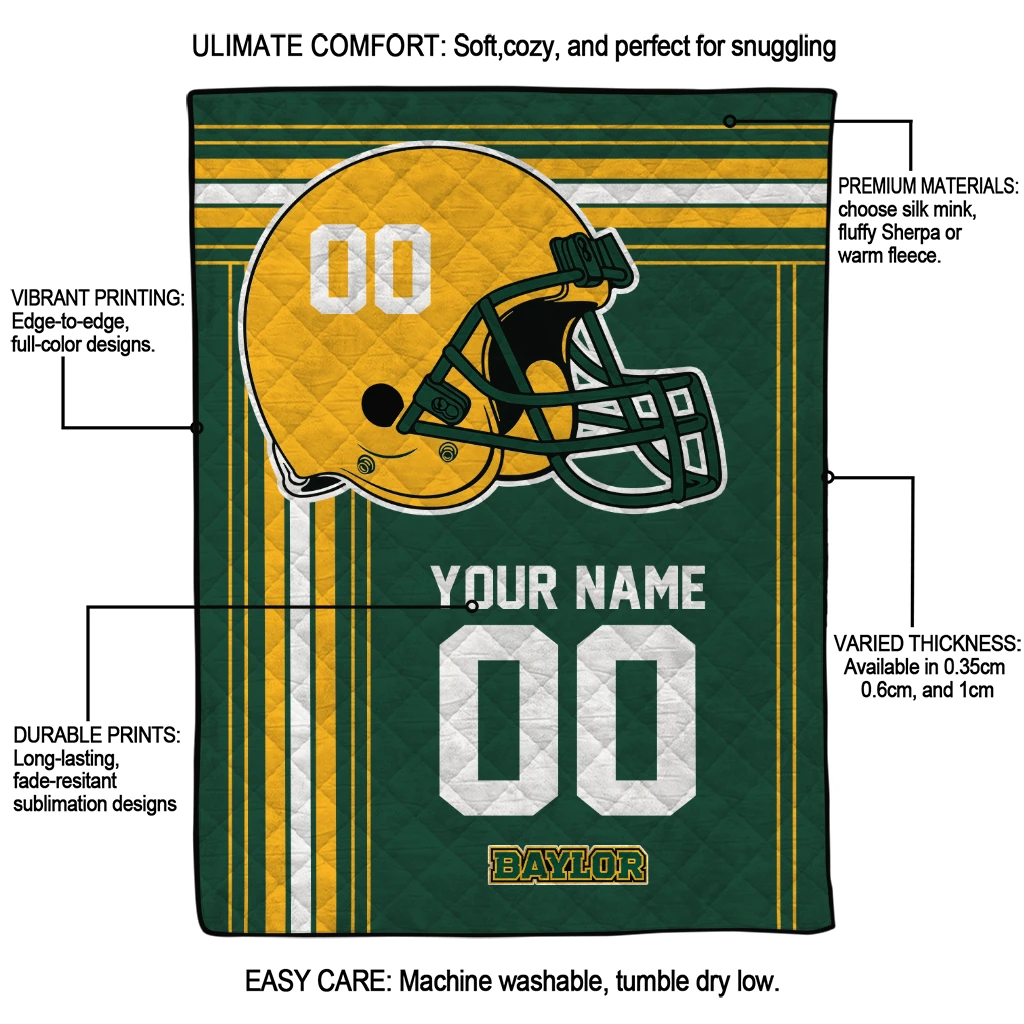 Custom Baylor Bears Helmet Theme Green Quilt Blanket