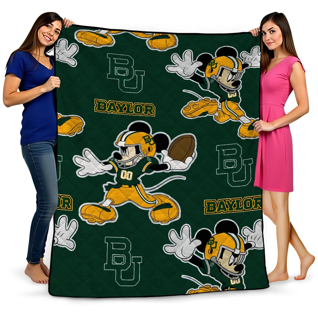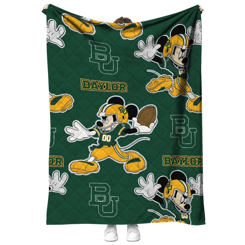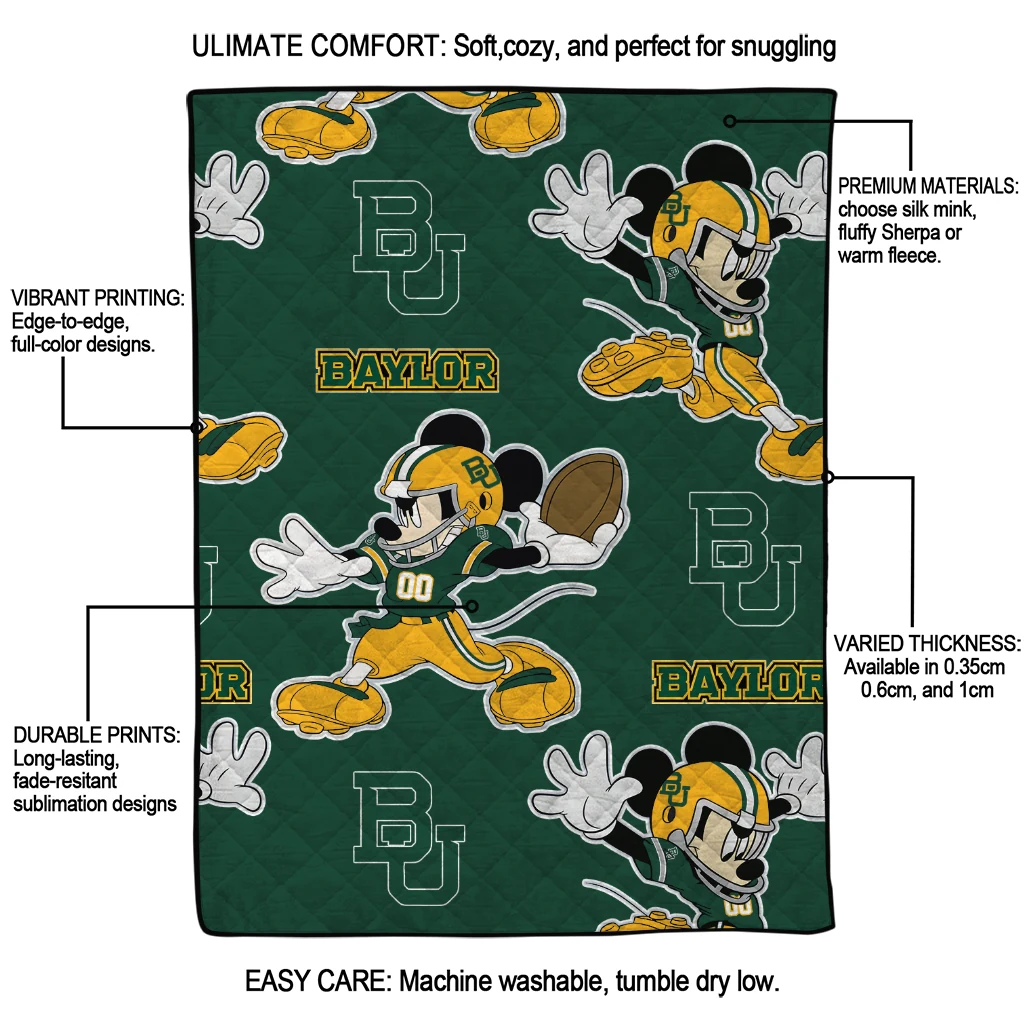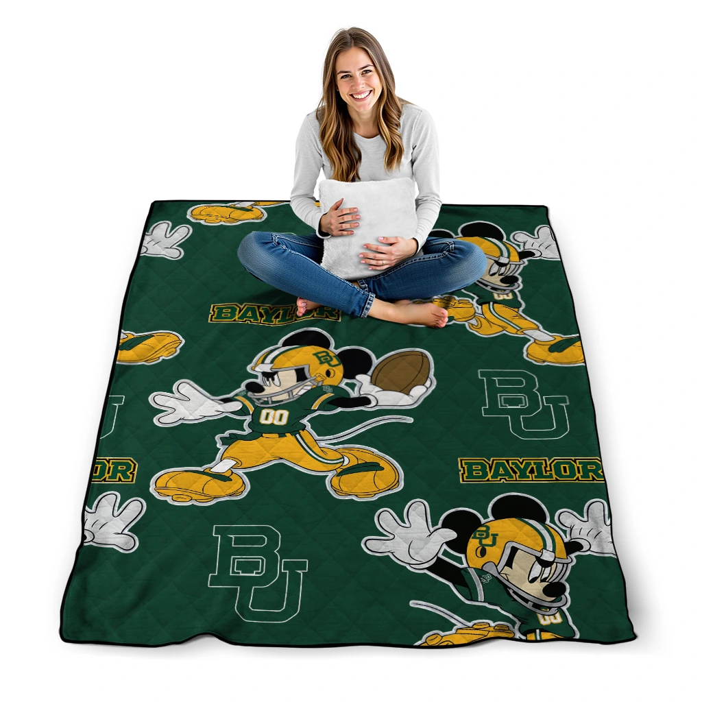 The Custom Baylor Bears Mickey Football Green Quilt Blanket is more than a blanket—it’s everyday comfort, thoughtfully made. Crafted from premium quilting fabric with a soft microfiber touch, it offers a smooth hand-feel and lasting coziness. Layered quilting with a cotton-filled core provides adaptable warmth across seasons while maintaining a clean, tailored look on your bed or sofa.