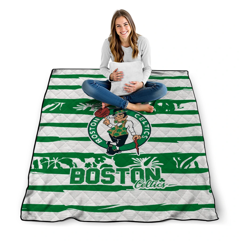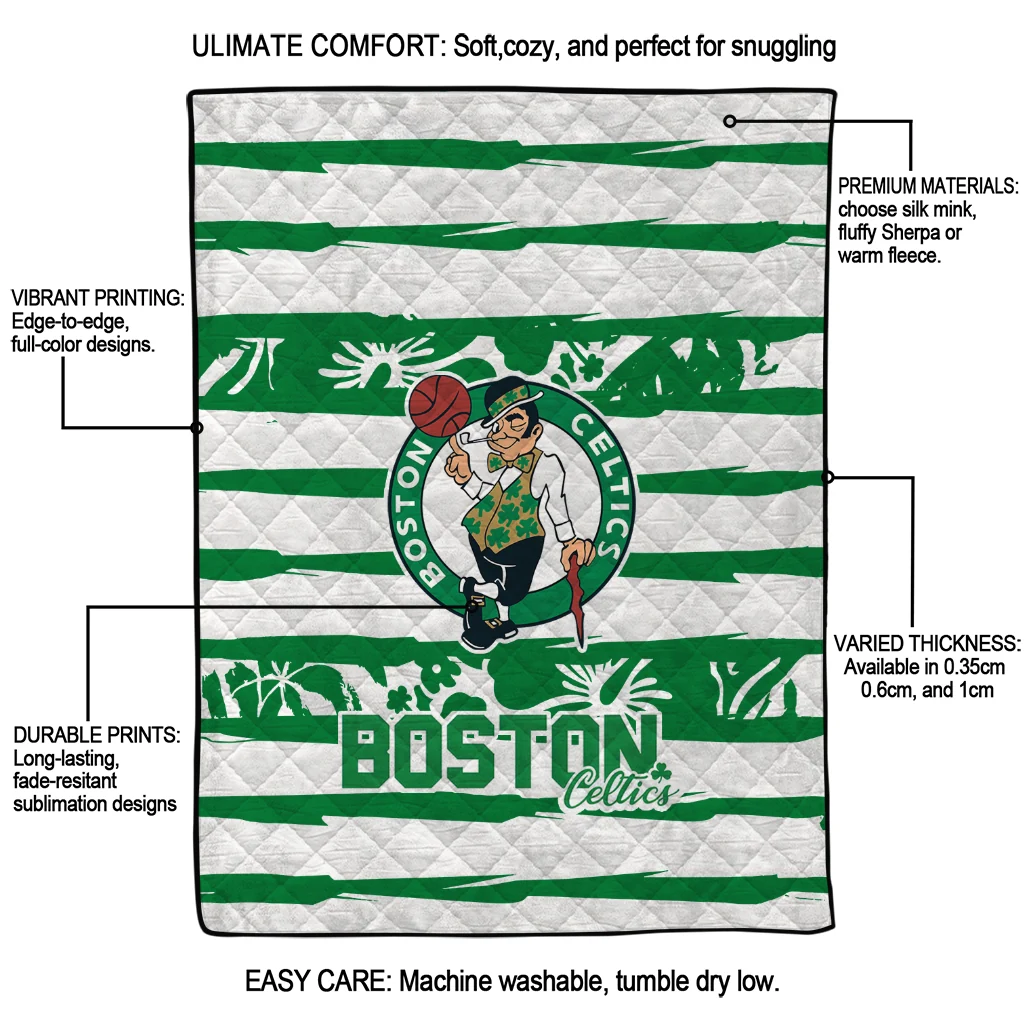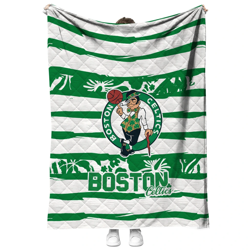 Wrap yourself in warmth and pride with the Custom Boston Celtics Layered Florals Green White Quilt Blanket from the Boston Celtics Blankets collection at Yes That Blanket. Made from 100% premium quilting-weight polyester blended with a touch of microfiber, this quilt offers a smooth, soft finish you’ll love. Choose between two quilting styles—Stipple or Diagonal—and enjoy the comfort of a cotton-filled layer inside that adds extra coziness for every season. The border is available in classic black or white, giving your design a clean, timeless edge.