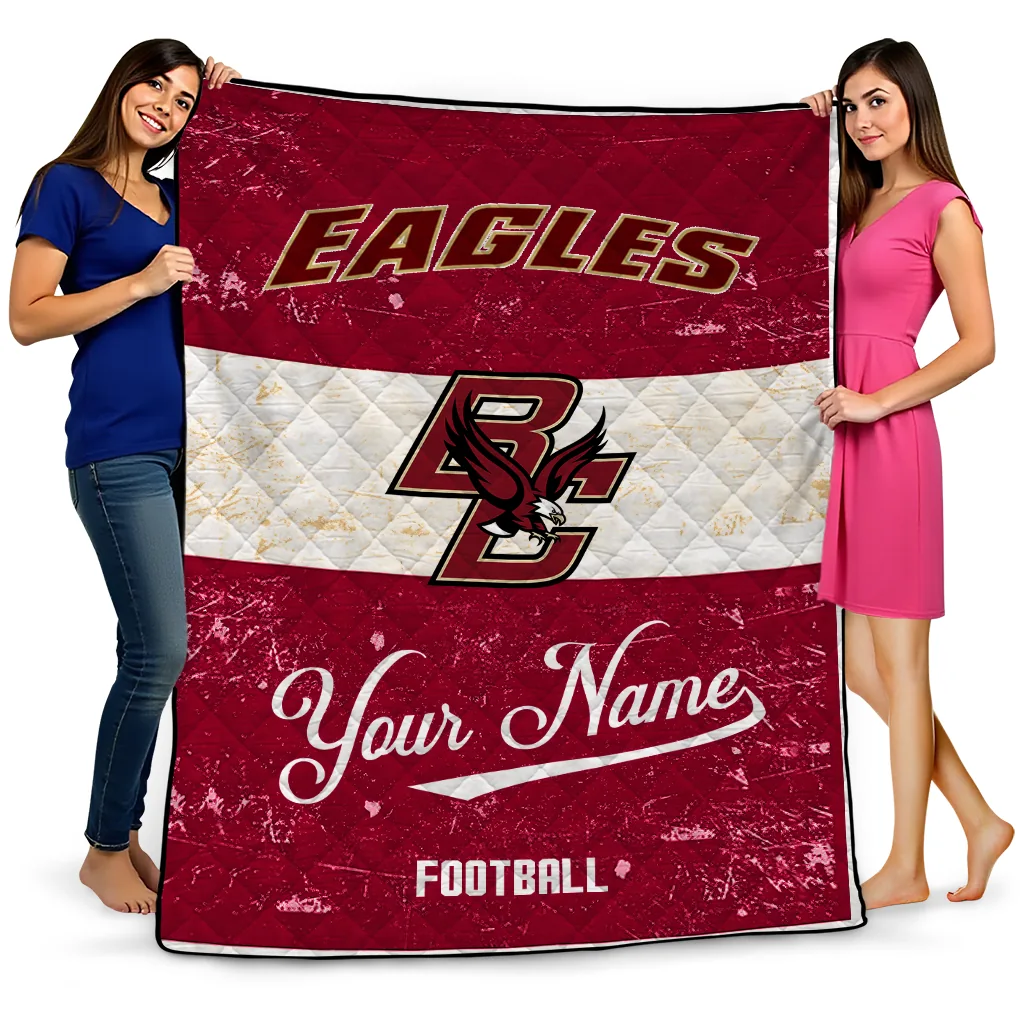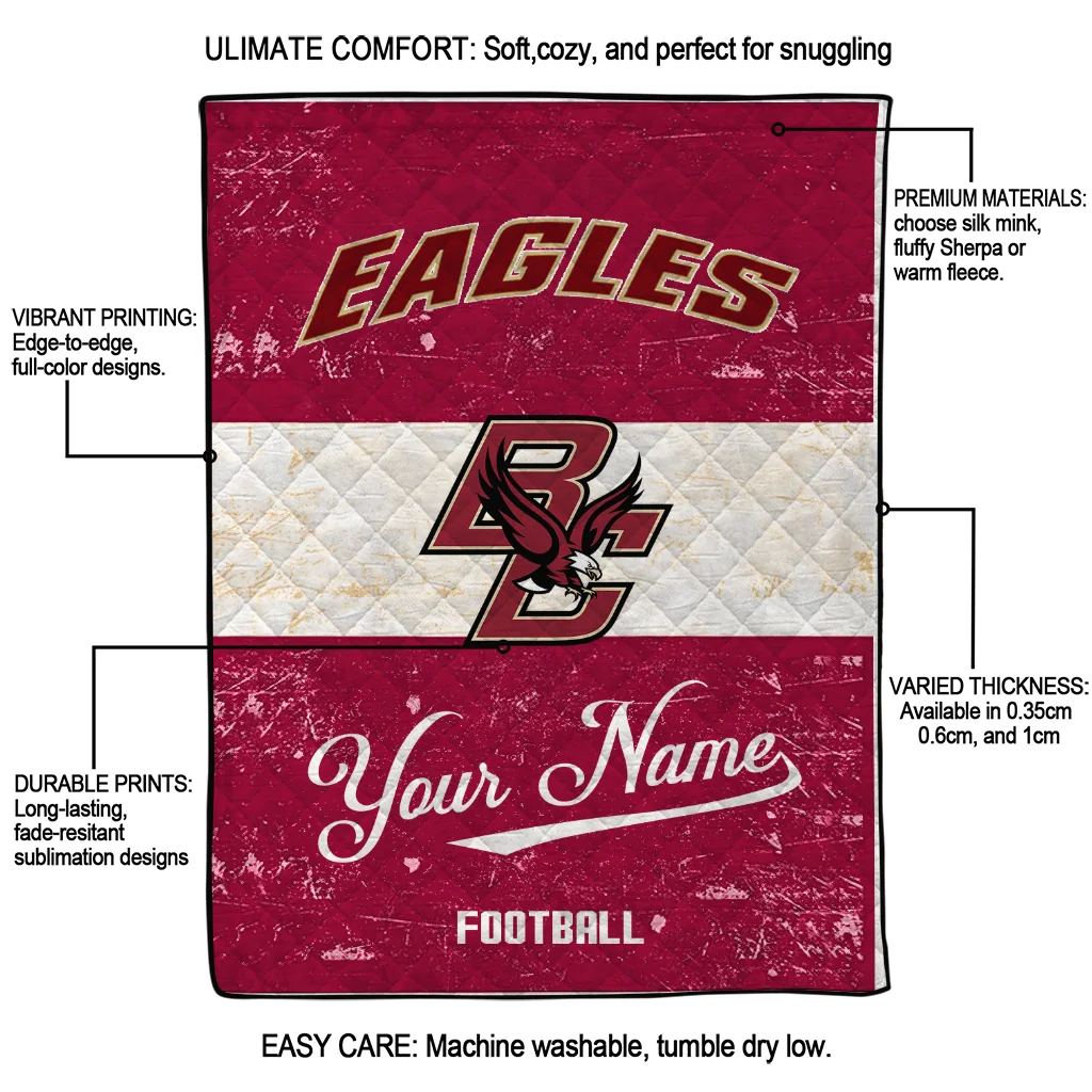 The Custom Boston College Eagles Hibiscus Burst Maroon White Quilt Blanket is more than a blanket—it’s everyday comfort, thoughtfully made. Crafted from premium quilting fabric with a soft microfiber touch, it offers a smooth hand-feel and lasting coziness. Layered quilting with a cotton-filled core provides adaptable warmth across seasons while maintaining a clean, tailored look on your bed or sofa.