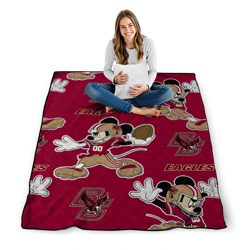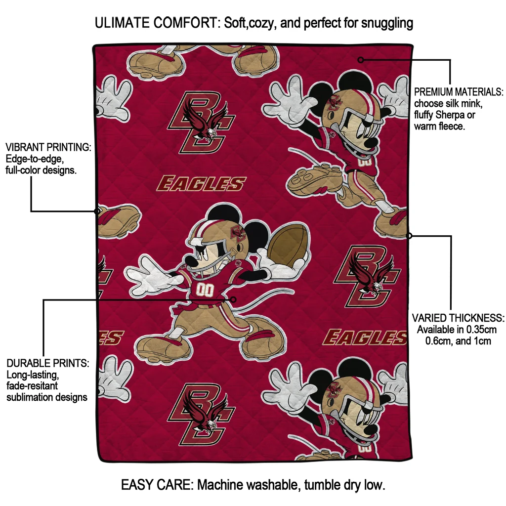Custom Boston College Eagles Mickey Football Maroon Quilt Blanket