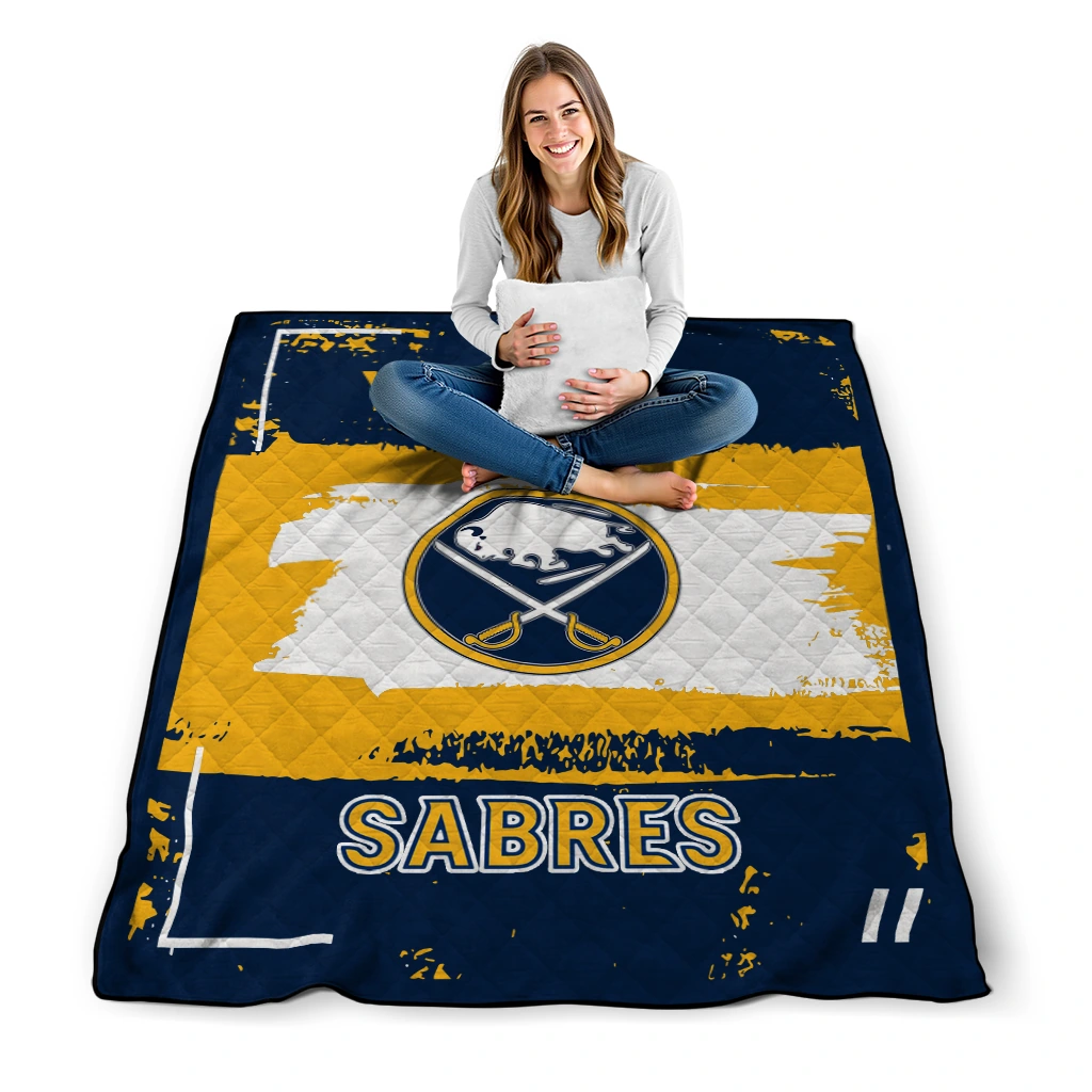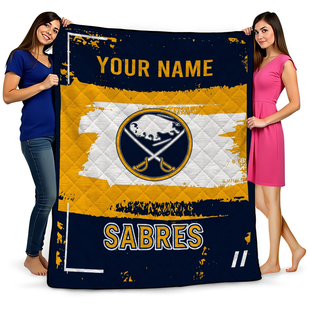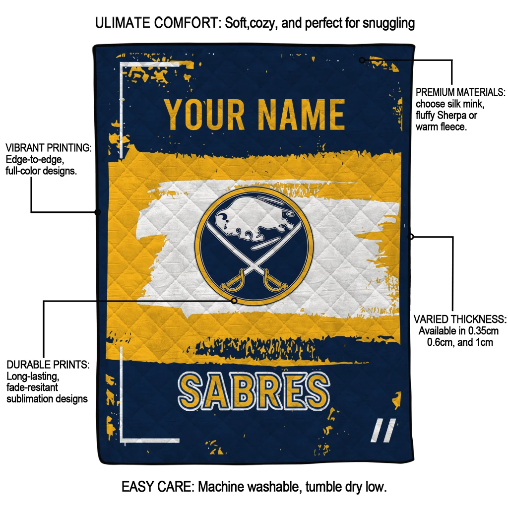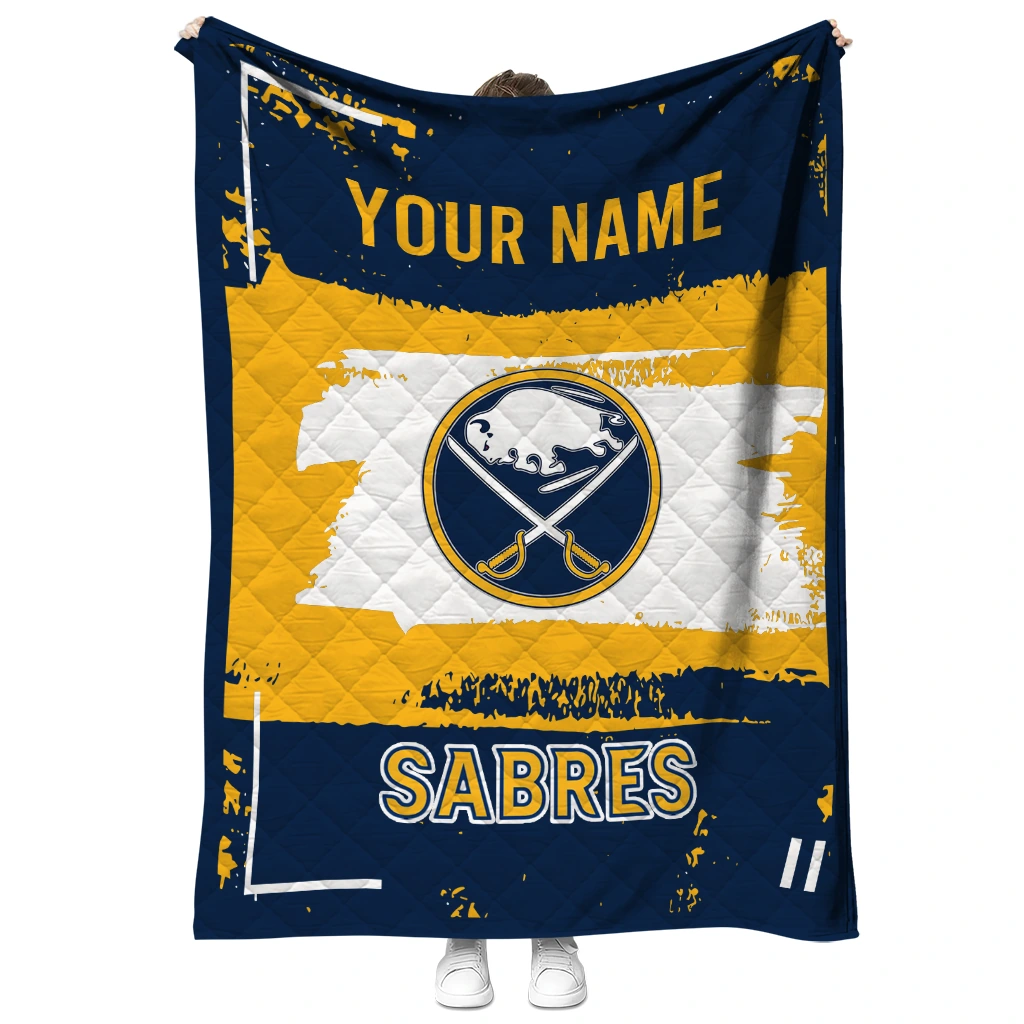 Custom Buffalo Sabres Grunge Patch Navy Blue White Quilt Blanket