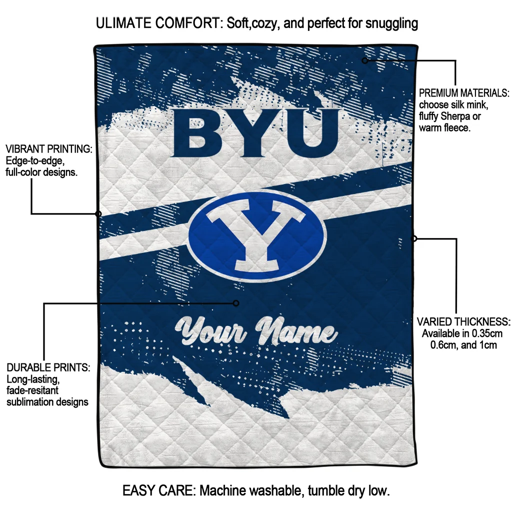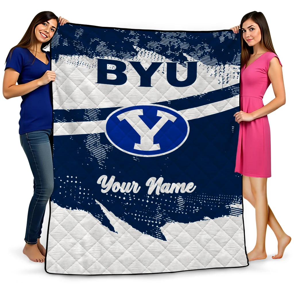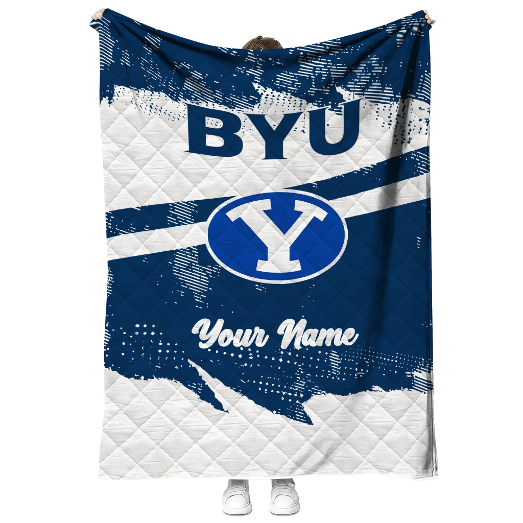 Wrap yourself in warmth and pride with the Custom BYU Cougars Brushstroke Layers Blue Quilt Blanket from the BYU Cougars Blankets collection at Yes That Blanket. Made from 100% premium quilting-weight polyester blended with a touch of microfiber, this quilt offers a smooth, soft finish you’ll love. Choose between two quilting styles—Stipple or Diagonal—and enjoy the comfort of a cotton-filled layer inside that adds extra coziness for every season. The border is available in classic black or white, giving your design a clean, timeless edge.