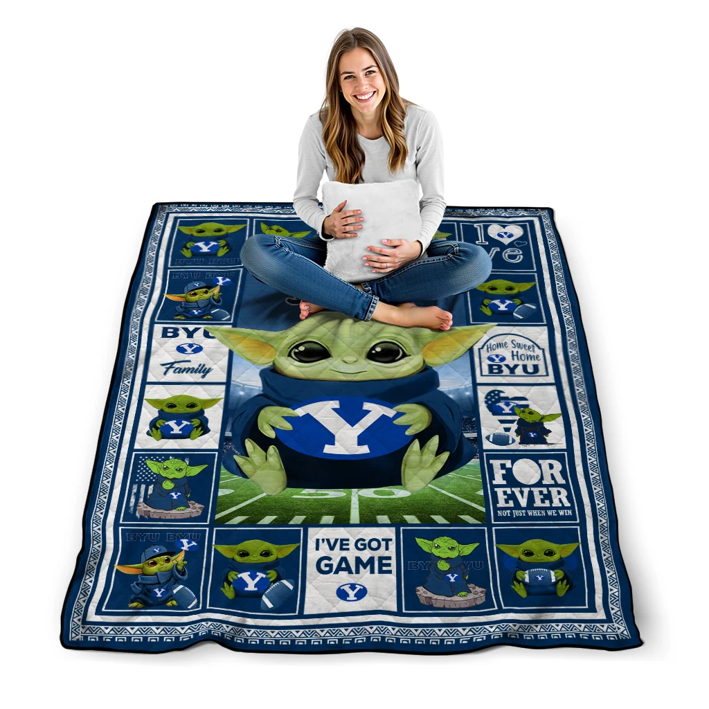 The Custom BYU Cougars Yody Baby Pattern Blue Quilt Blanket is more than a blanket—it’s everyday comfort, thoughtfully made. Crafted from premium quilting fabric with a soft microfiber touch, it offers a smooth hand-feel and lasting coziness. Layered quilting with a cotton-filled core provides adaptable warmth across seasons while maintaining a clean, tailored look on your bed or sofa.