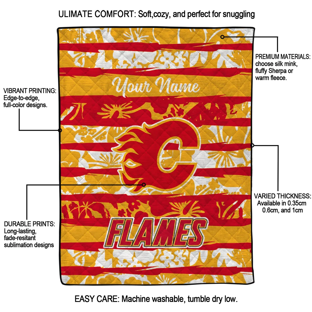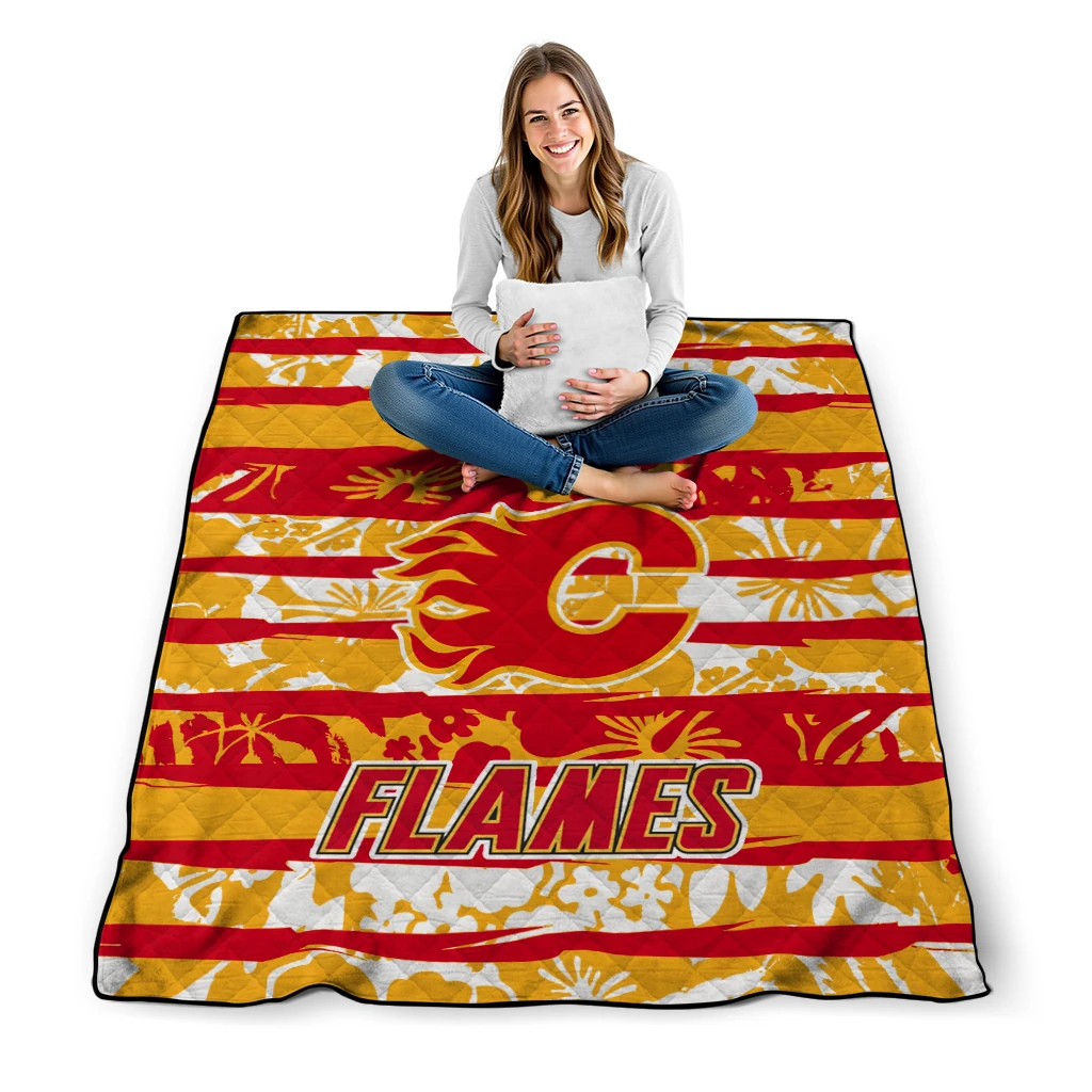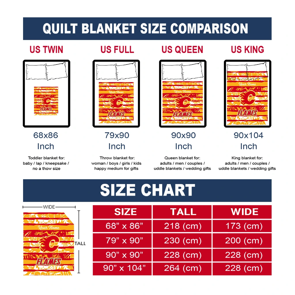 The Custom Calgary Flames Layered Florals Red White Quilt Blanket is more than a blanket—it’s everyday comfort, thoughtfully made. Crafted from premium quilting fabric with a soft microfiber touch, it offers a smooth hand-feel and lasting coziness. Layered quilting with a cotton-filled core provides adaptable warmth across seasons while maintaining a clean, tailored look on your bed or sofa.
