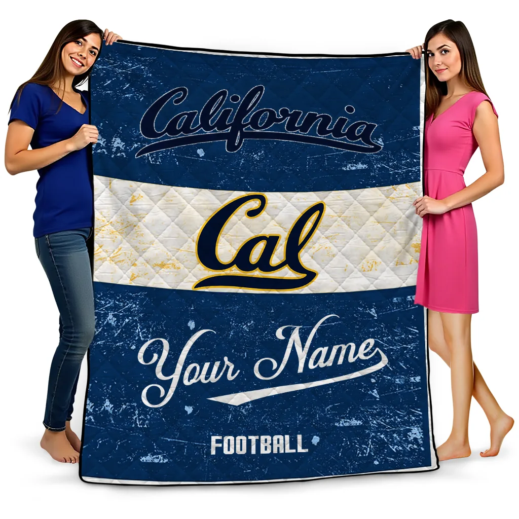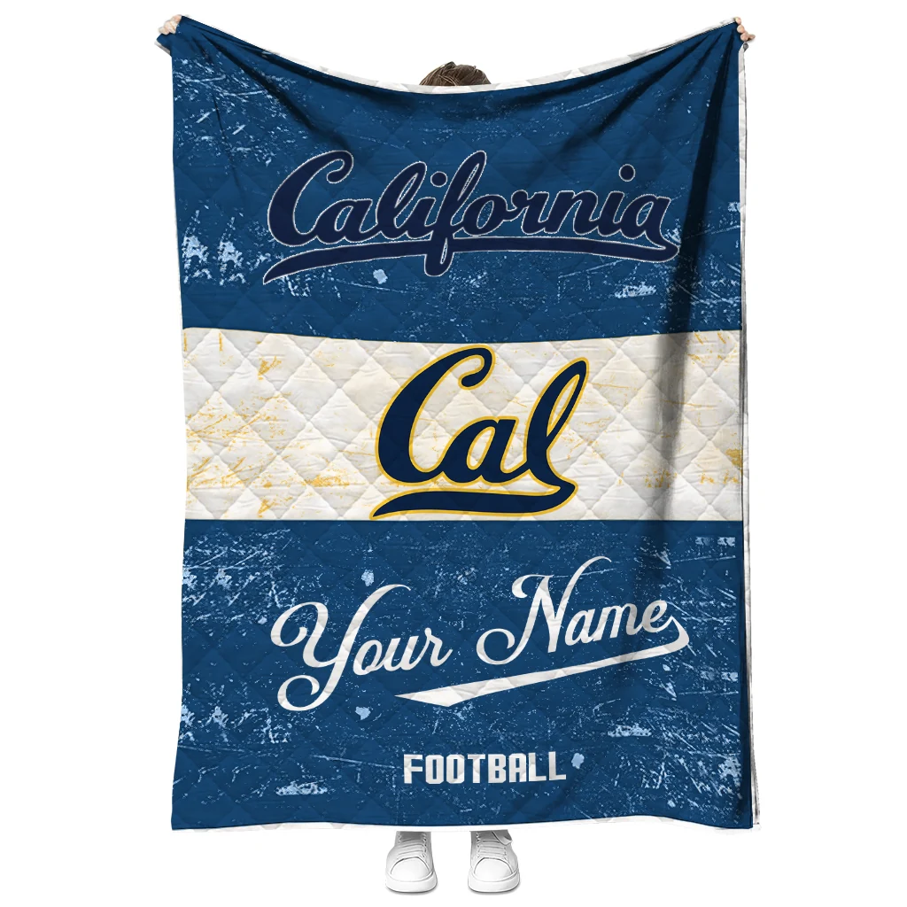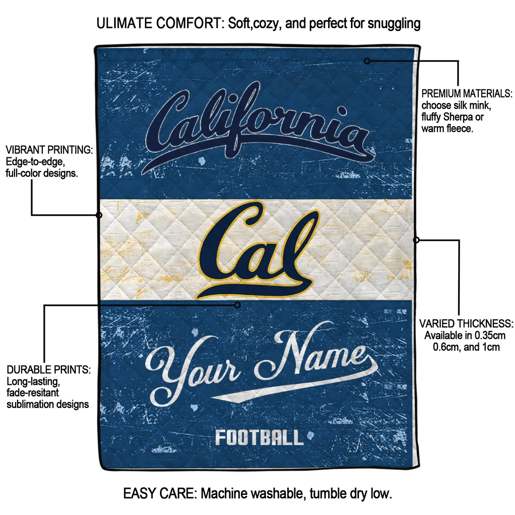 Custom California Golden Bears Hibiscus Burst Blue White Quilt Blanket