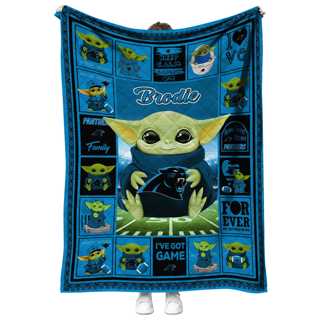 Wrap yourself in warmth and pride with the Custom Carolina Panthers Yody Baby Pattern Blue Quilt Blanket from the Carolina Panthers Blankets collection at Yes That Blanket. Made from 100% premium quilting-weight polyester blended with a touch of microfiber, this quilt offers a smooth, soft finish you’ll love. Choose between two quilting styles—Stipple or Diagonal—and enjoy the comfort of a cotton-filled layer inside that adds extra coziness for every season. The border is available in classic black or white, giving your design a clean, timeless edge.