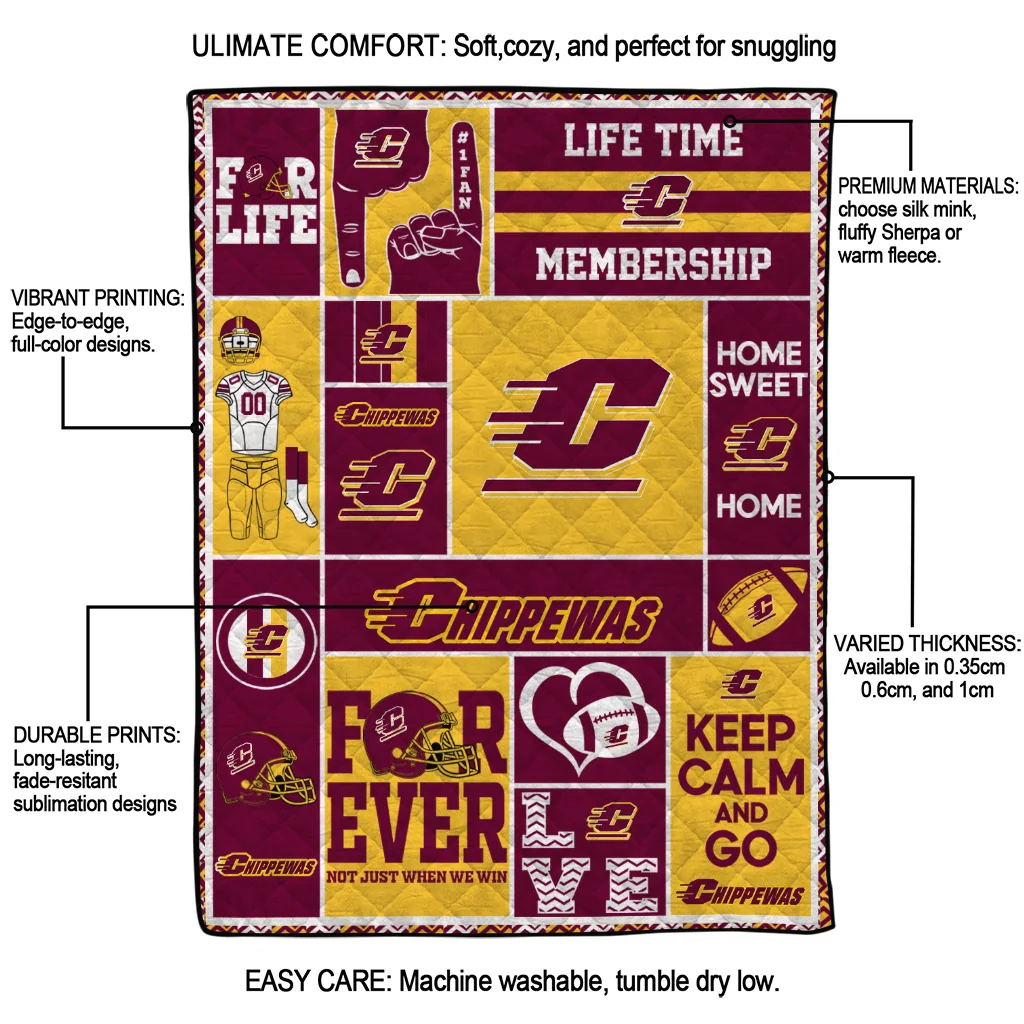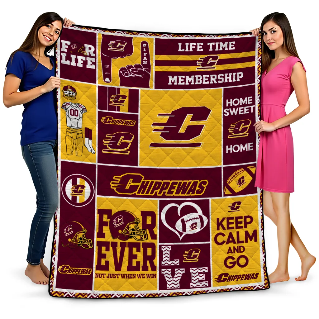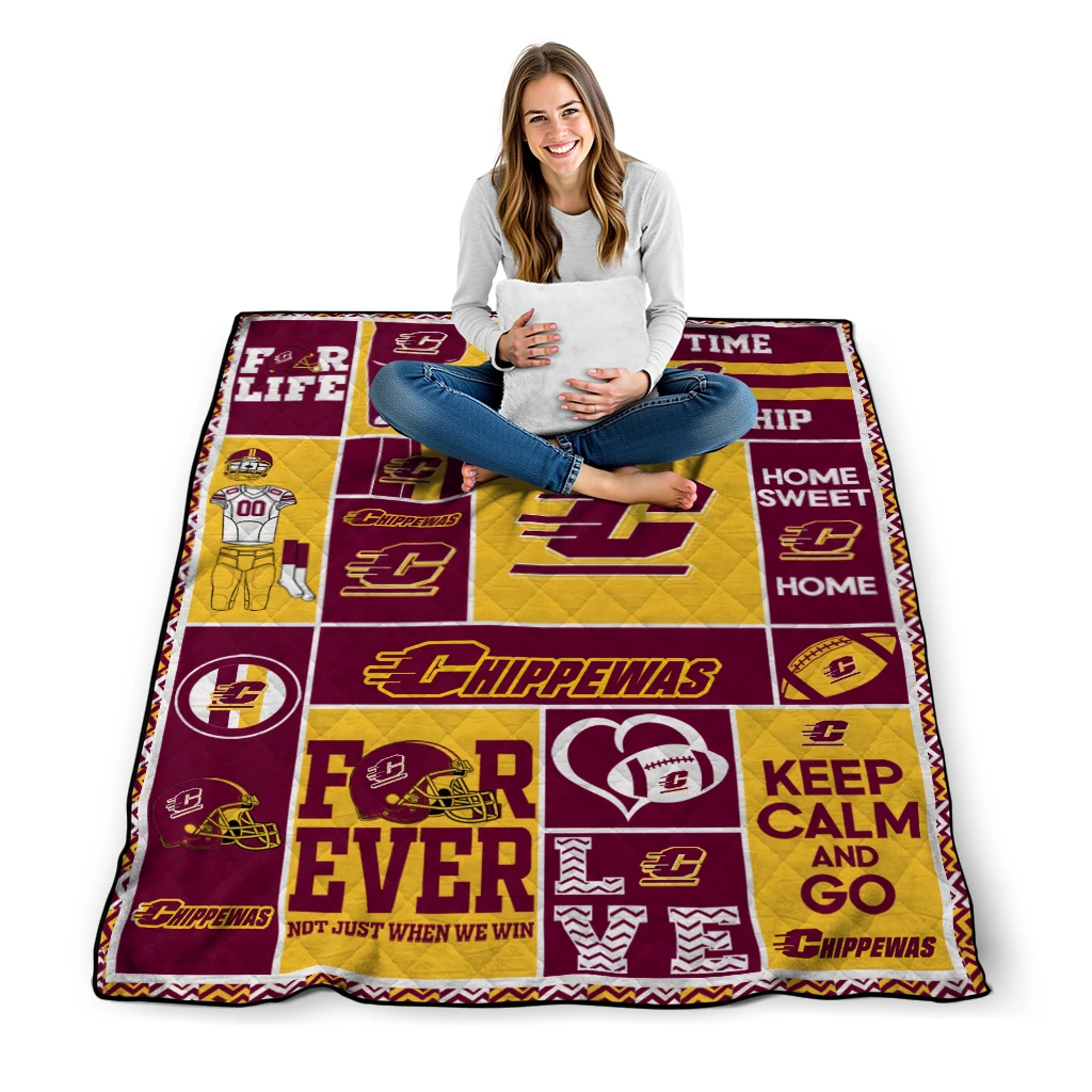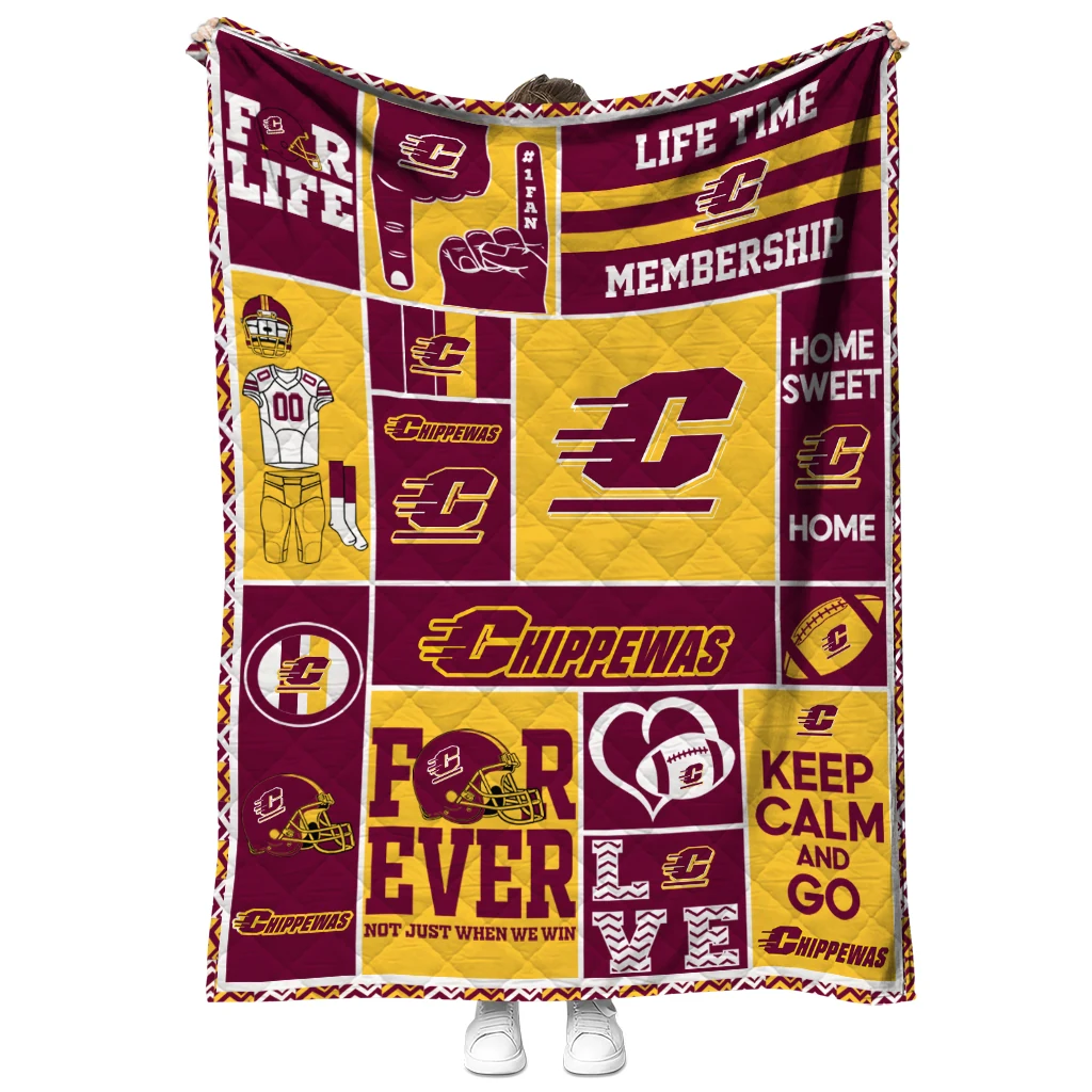 Custom Central Michigan Chippewas Helmet Passion Maroon Quilt Blanket