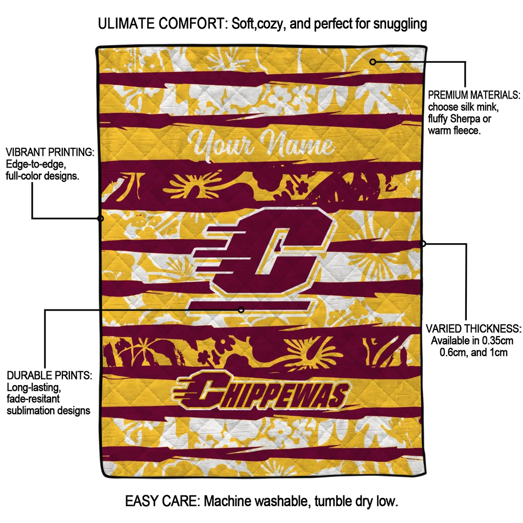 Wrap yourself in warmth and pride with the Custom Central Michigan Chippewas Layered Florals Maroon White Quilt Blanket from the Central Michigan Chippewas Blankets collection at Yes That Blanket. Made from 100% premium quilting-weight polyester blended with a touch of microfiber, this quilt offers a smooth, soft finish you’ll love. Choose between two quilting styles—Stipple or Diagonal—and enjoy the comfort of a cotton-filled layer inside that adds extra coziness for every season. The border is available in classic black or white, giving your design a clean, timeless edge.