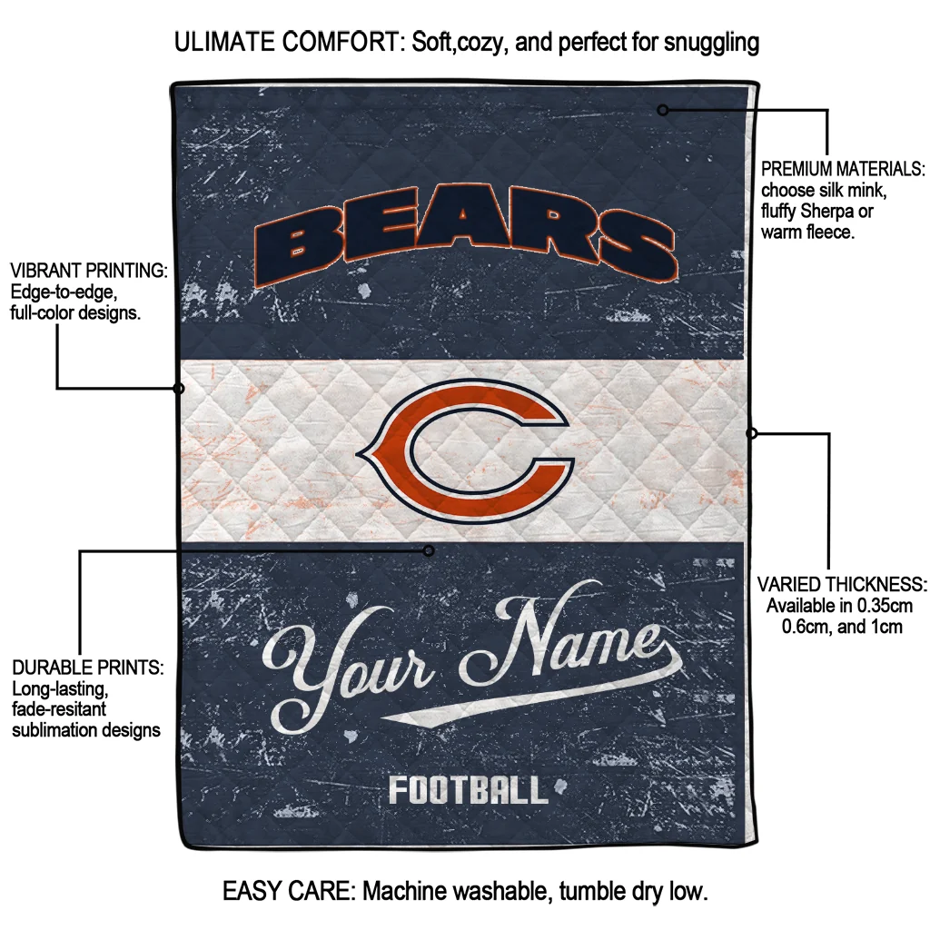 The Custom Chicago Bears Hibiscus Burst Blue White Quilt Blanket is more than a blanket—it’s everyday comfort, thoughtfully made. Crafted from premium quilting fabric with a soft microfiber touch, it offers a smooth hand-feel and lasting coziness. Layered quilting with a cotton-filled core provides adaptable warmth across seasons while maintaining a clean, tailored look on your bed or sofa.