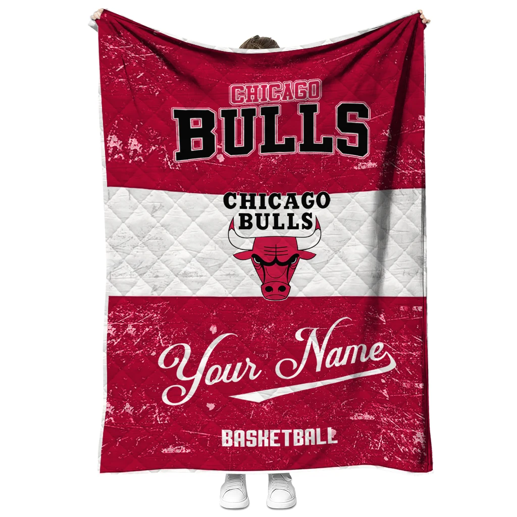 Custom Chicago Bulls Helmet Fan Red White Quilt Blanket