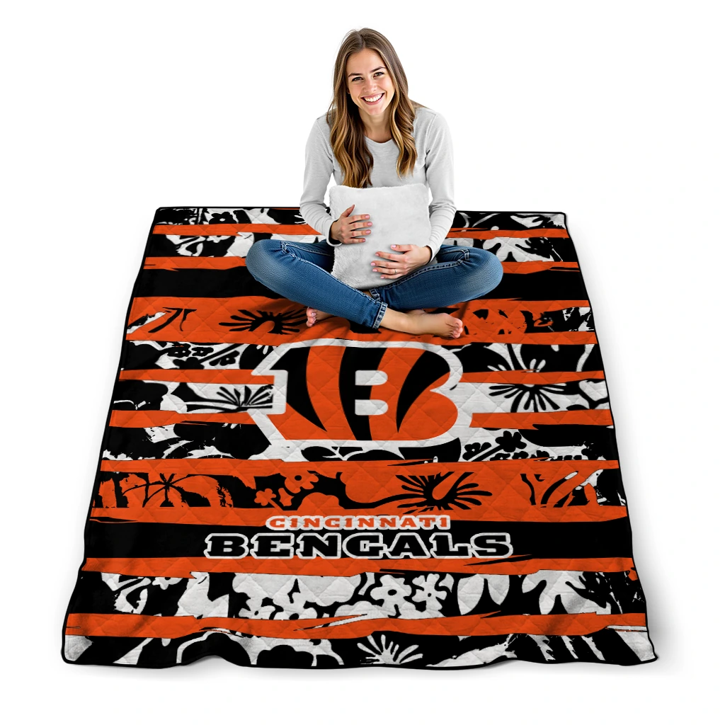 The Custom Cincinnati Bengals Layered Florals Orange White Quilt Blanket is more than a blanket—it’s everyday comfort, thoughtfully made. Crafted from premium quilting fabric with a soft microfiber touch, it offers a smooth hand-feel and lasting coziness. Layered quilting with a cotton-filled core provides adaptable warmth across seasons while maintaining a clean, tailored look on your bed or sofa.