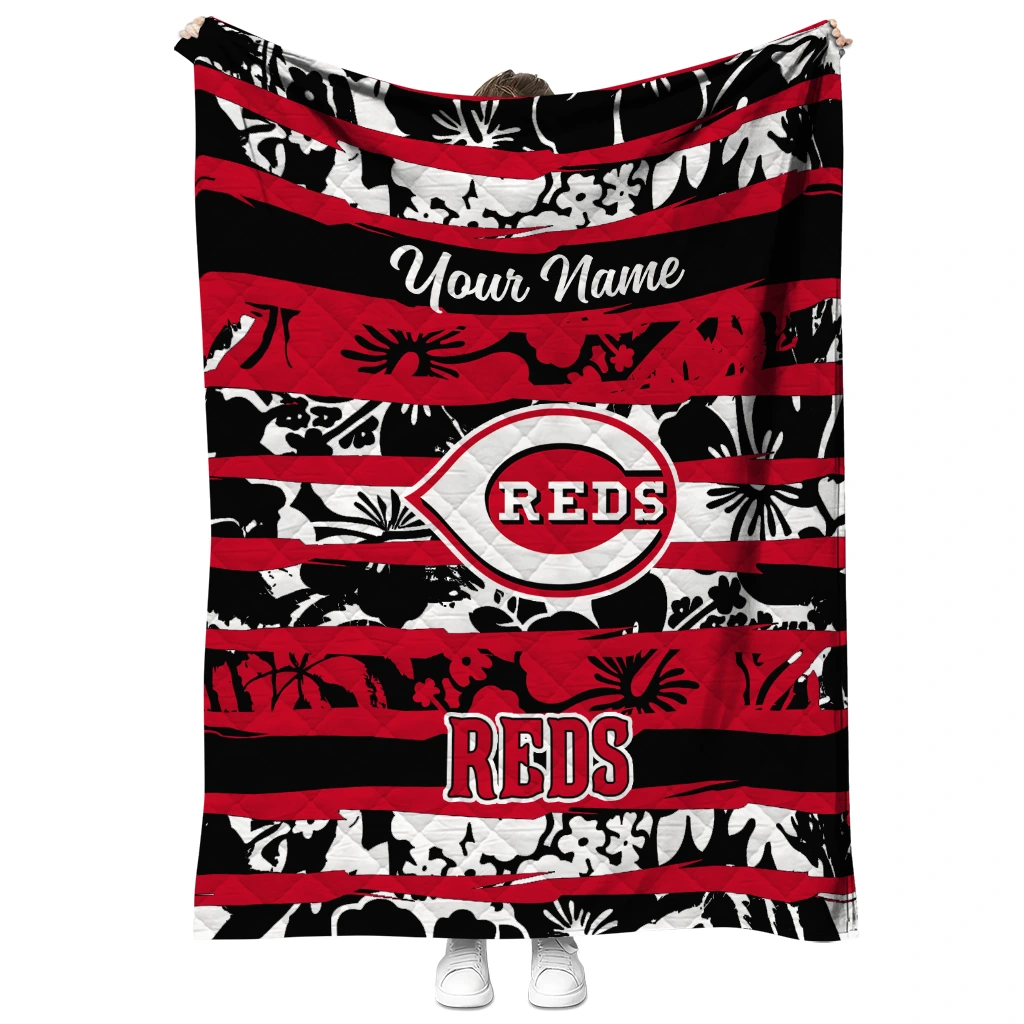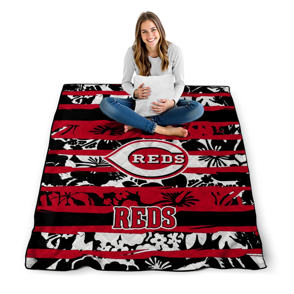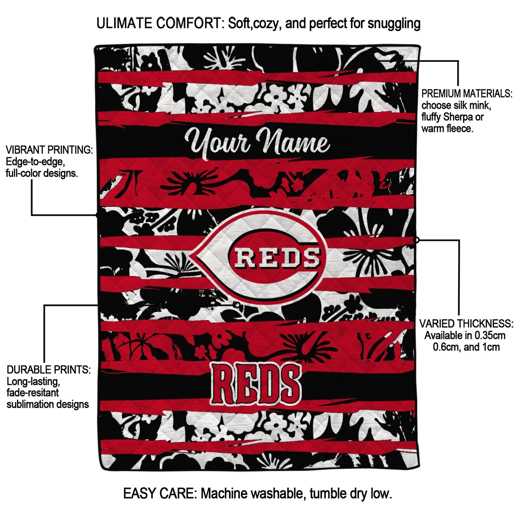 Wrap yourself in warmth and pride with the Custom Cincinnati Reds Layered Florals Red White Quilt Blanket from the Cincinnati Reds Blankets collection at Yes That Blanket. Made from 100% premium quilting-weight polyester blended with a touch of microfiber, this quilt offers a smooth, soft finish you’ll love. Choose between two quilting styles—Stipple or Diagonal—and enjoy the comfort of a cotton-filled layer inside that adds extra coziness for every season. The border is available in classic black or white, giving your design a clean, timeless edge.