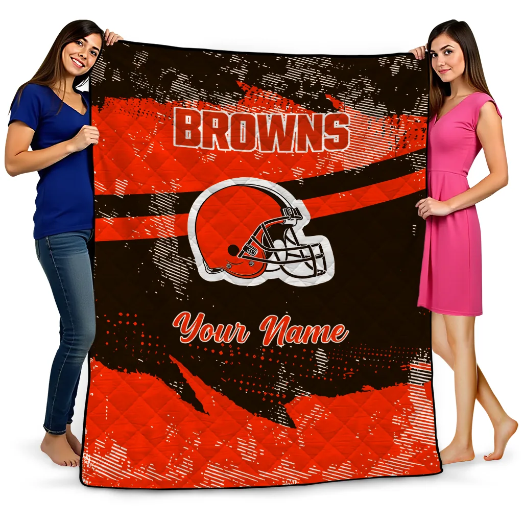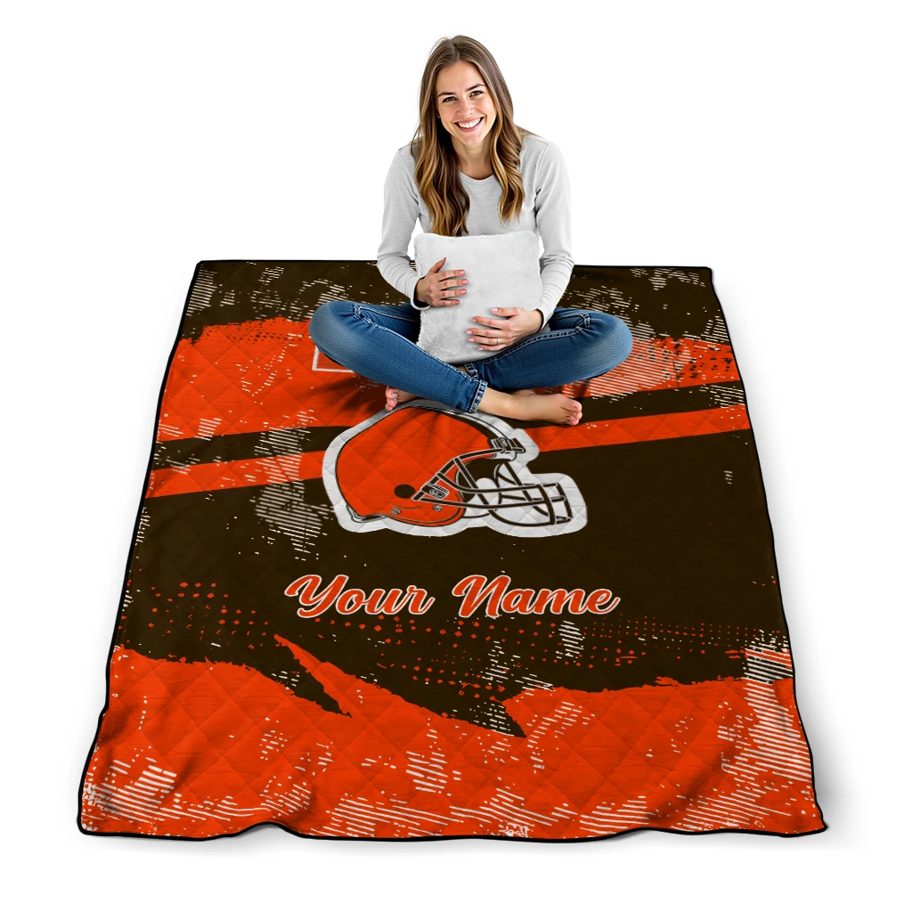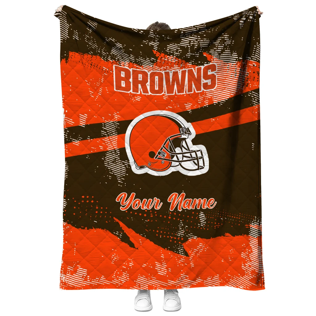 Wrap yourself in warmth and pride with the Custom Cleveland Browns Brushstroke Layers Brown Quilt Blanket from the Cleveland Browns Blankets collection at Yes That Blanket. Made from 100% premium quilting-weight polyester blended with a touch of microfiber, this quilt offers a smooth, soft finish you’ll love. Choose between two quilting styles—Stipple or Diagonal—and enjoy the comfort of a cotton-filled layer inside that adds extra coziness for every season. The border is available in classic black or white, giving your design a clean, timeless edge.