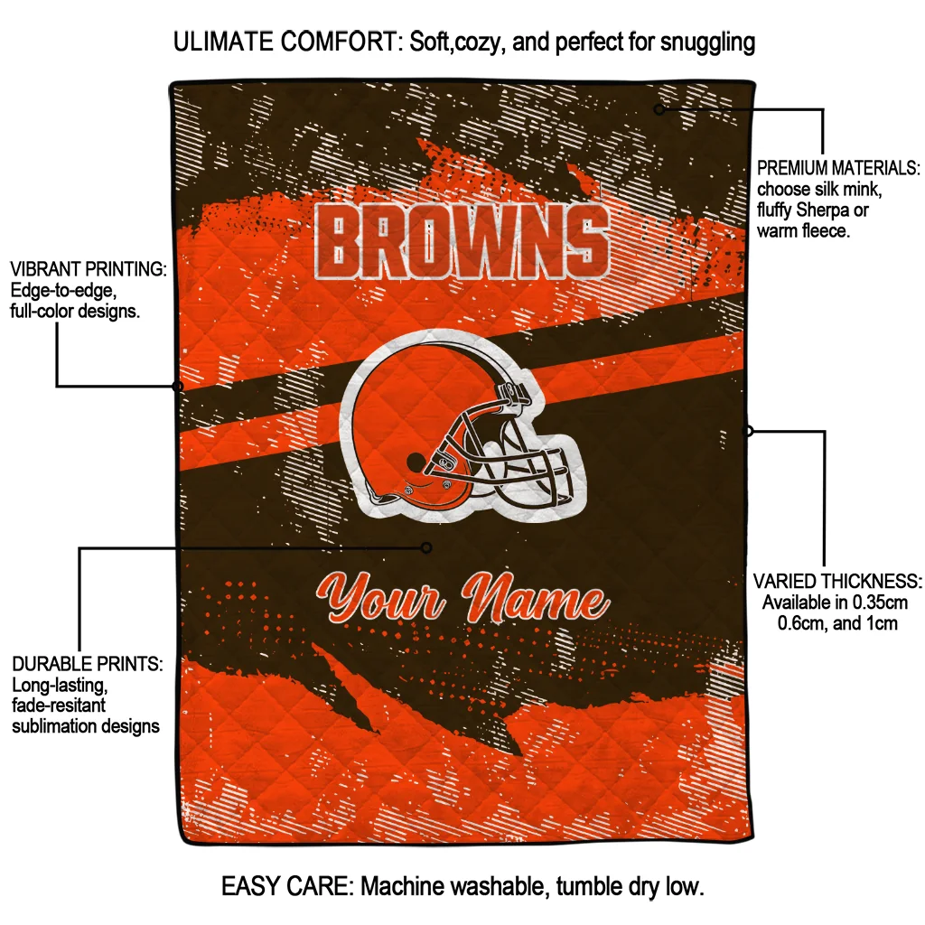 The Custom Cleveland Browns Brushstroke Layers Brown Quilt Blanket is more than a blanket—it’s everyday comfort, thoughtfully made. Crafted from premium quilting fabric with a soft microfiber touch, it offers a smooth hand-feel and lasting coziness. Layered quilting with a cotton-filled core provides adaptable warmth across seasons while maintaining a clean, tailored look on your bed or sofa.