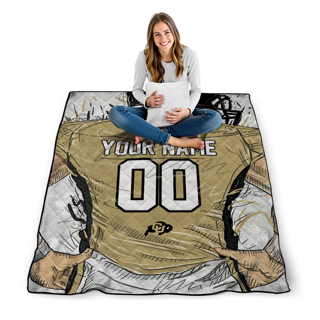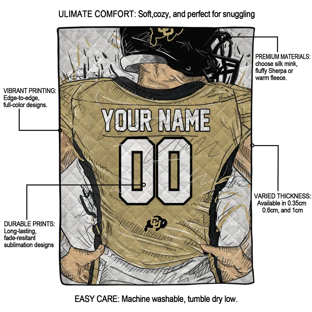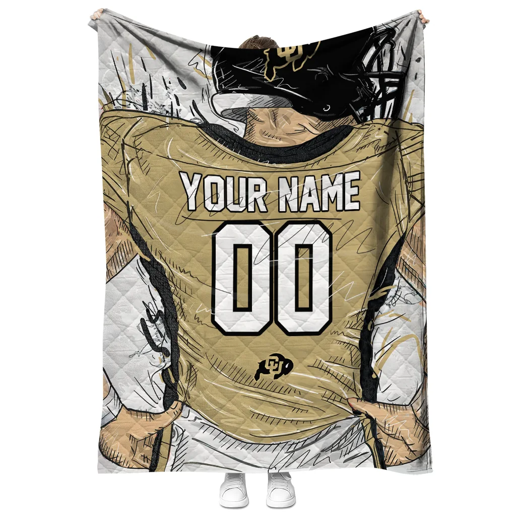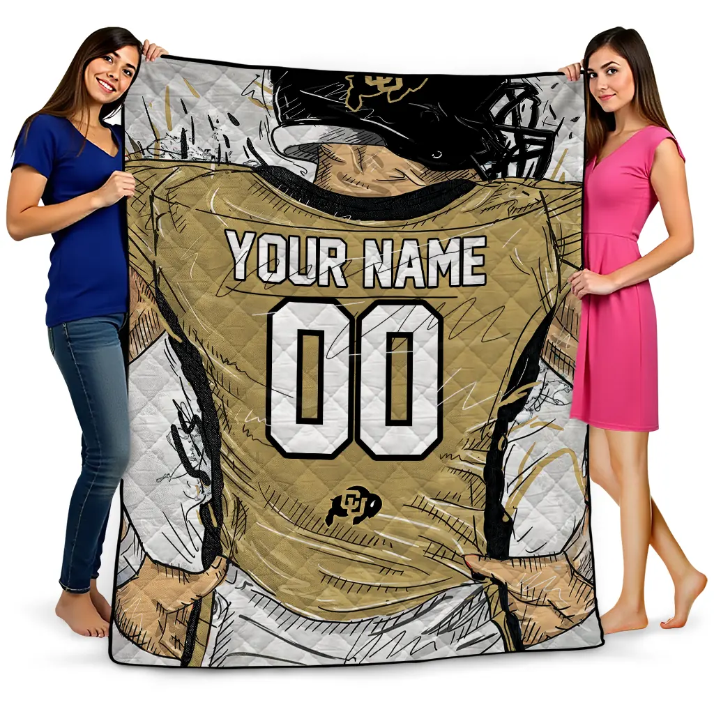 Custom Colorado Buffaloes Player Sketch Gold Gray Quilt Blanket