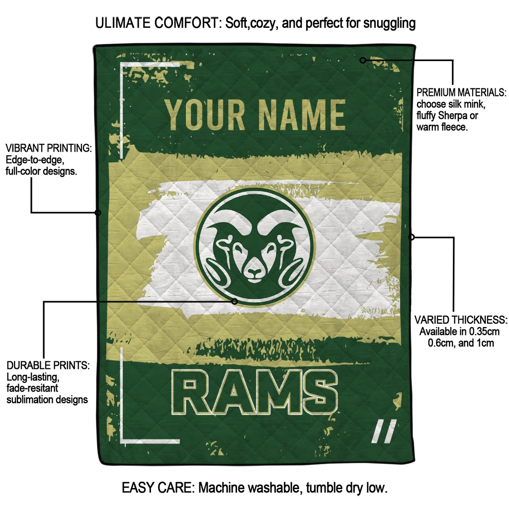 Custom Colorado State Rams Grunge Patch Green White Quilt Blanket