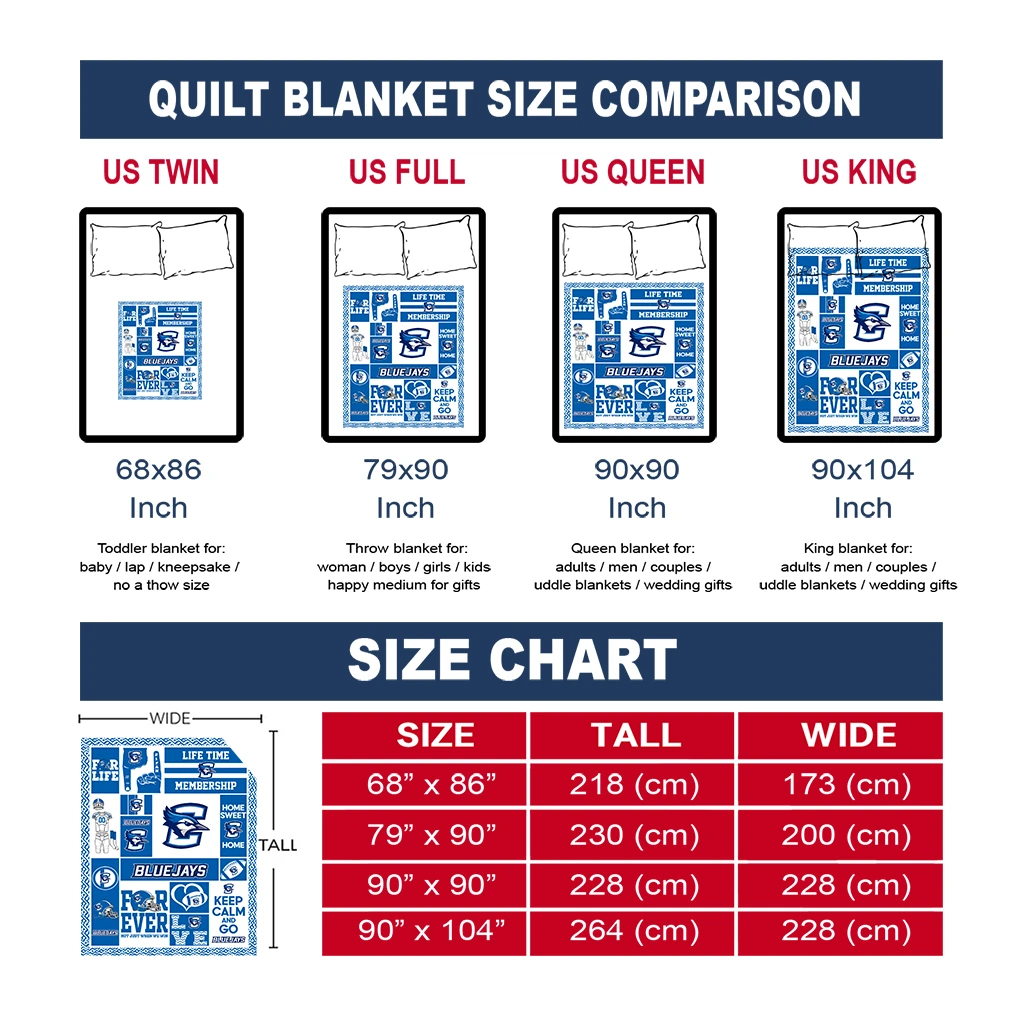 The Custom Creighton Bluejays Helmet Passion Blue Quilt Blanket is more than a blanket—it’s everyday comfort, thoughtfully made. Crafted from premium quilting fabric with a soft microfiber touch, it offers a smooth hand-feel and lasting coziness. Layered quilting with a cotton-filled core provides adaptable warmth across seasons while maintaining a clean, tailored look on your bed or sofa.