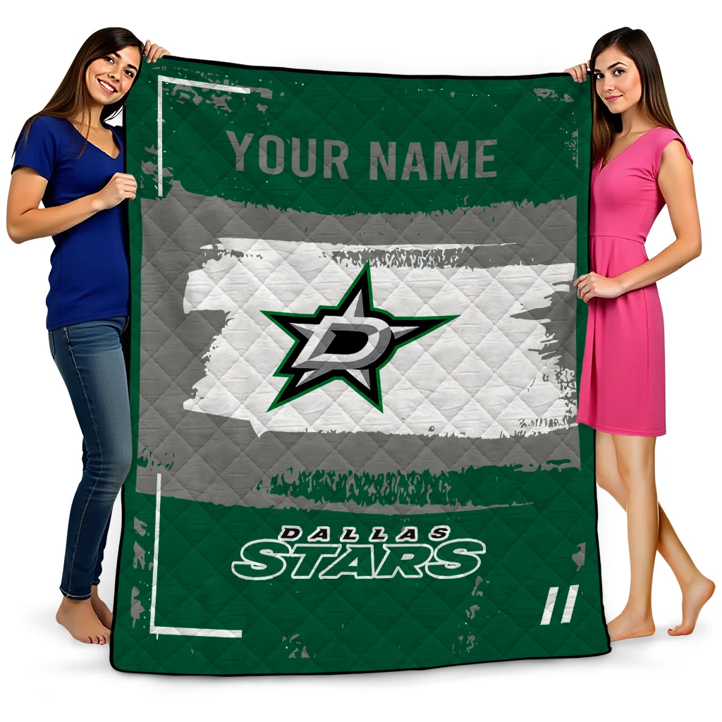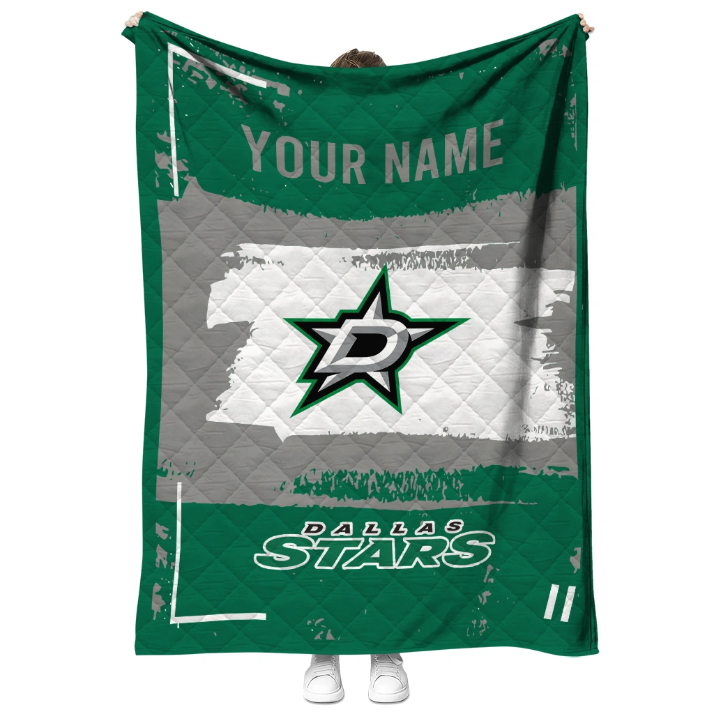 Custom Dallas Stars Grunge Patch Green White Quilt Blanket