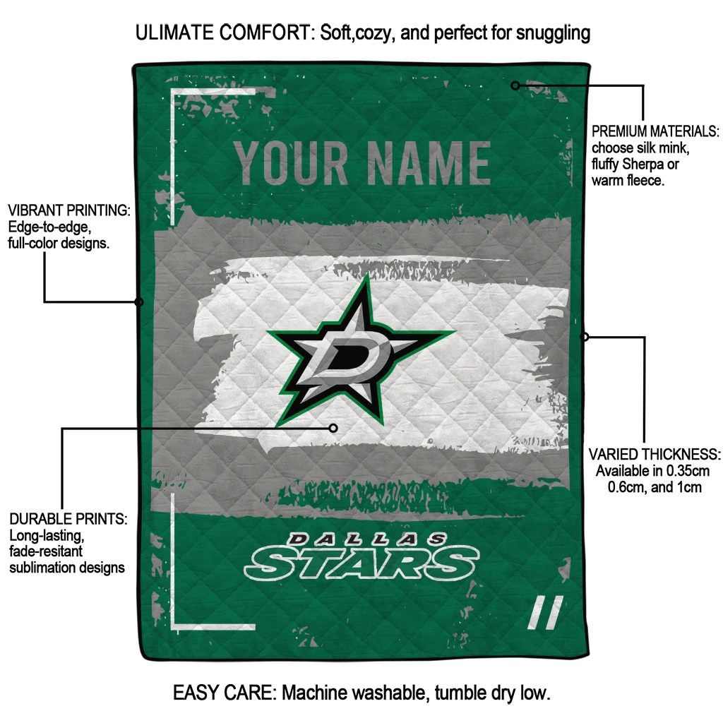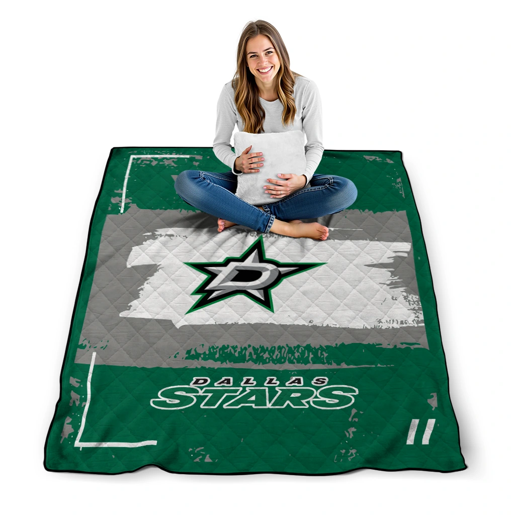 The Custom Dallas Stars Grunge Patch Green White Quilt Blanket is more than a blanket—it’s everyday comfort, thoughtfully made. Crafted from premium quilting fabric with a soft microfiber touch, it offers a smooth hand-feel and lasting coziness. Layered quilting with a cotton-filled core provides adaptable warmth across seasons while maintaining a clean, tailored look on your bed or sofa.