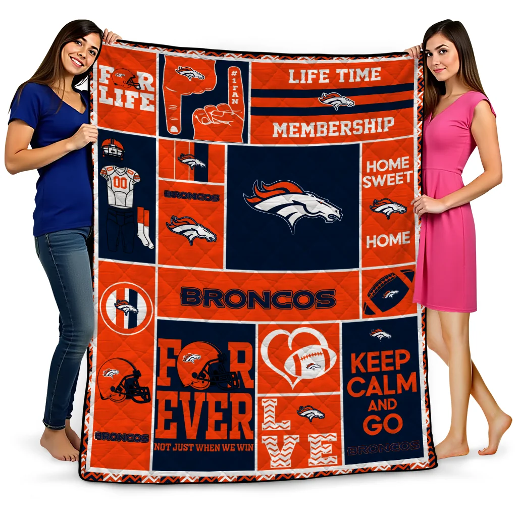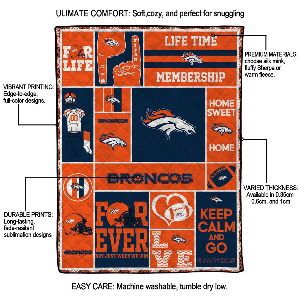 Custom Denver Broncos Helmet Passion Orange Quilt Blanket