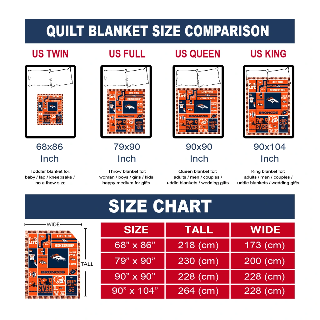 The Custom Denver Broncos Helmet Passion Orange Quilt Blanket is more than a blanket—it’s everyday comfort, thoughtfully made. Crafted from premium quilting fabric with a soft microfiber touch, it offers a smooth hand-feel and lasting coziness. Layered quilting with a cotton-filled core provides adaptable warmth across seasons while maintaining a clean, tailored look on your bed or sofa.