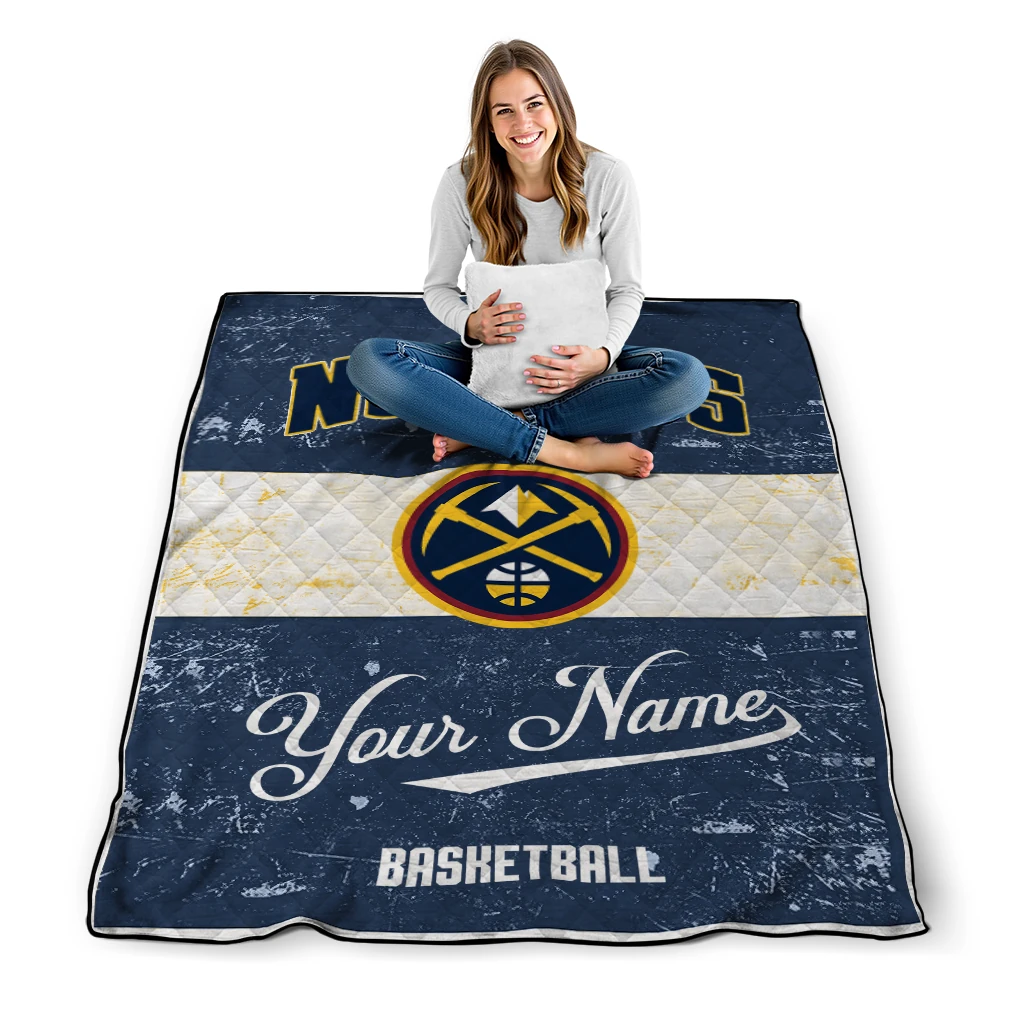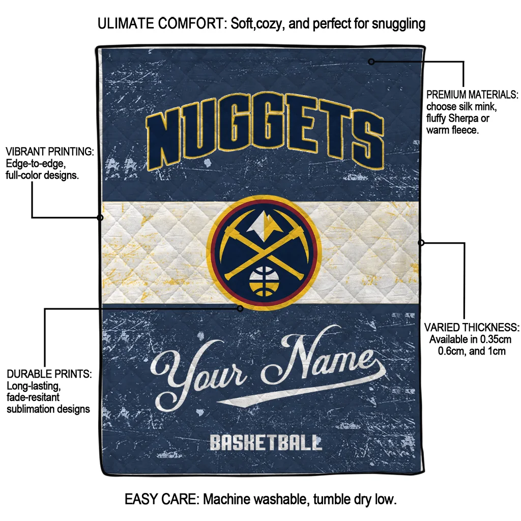 Custom Denver Nuggets Helmet Fan Blue White Quilt Blanket