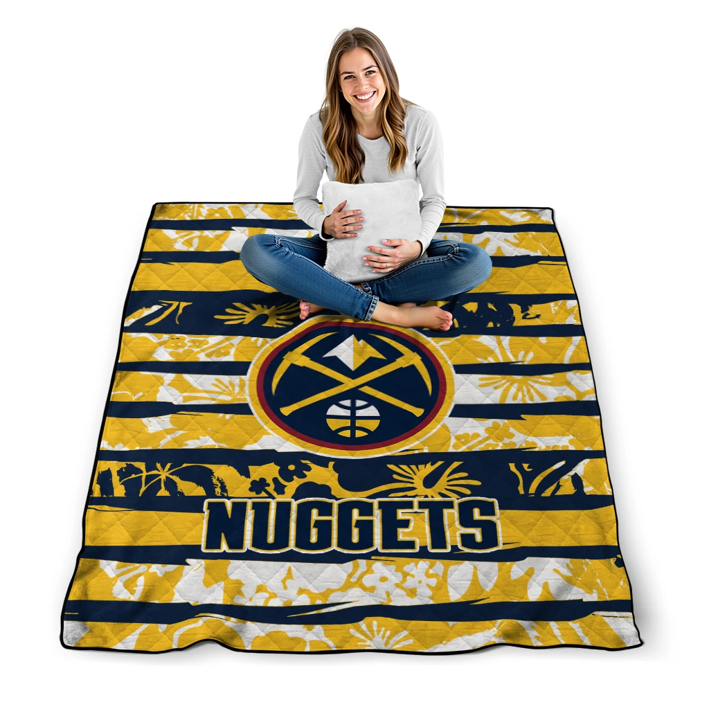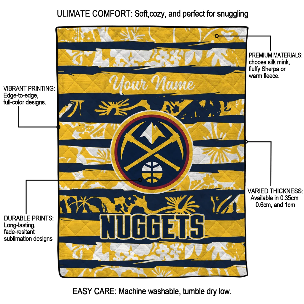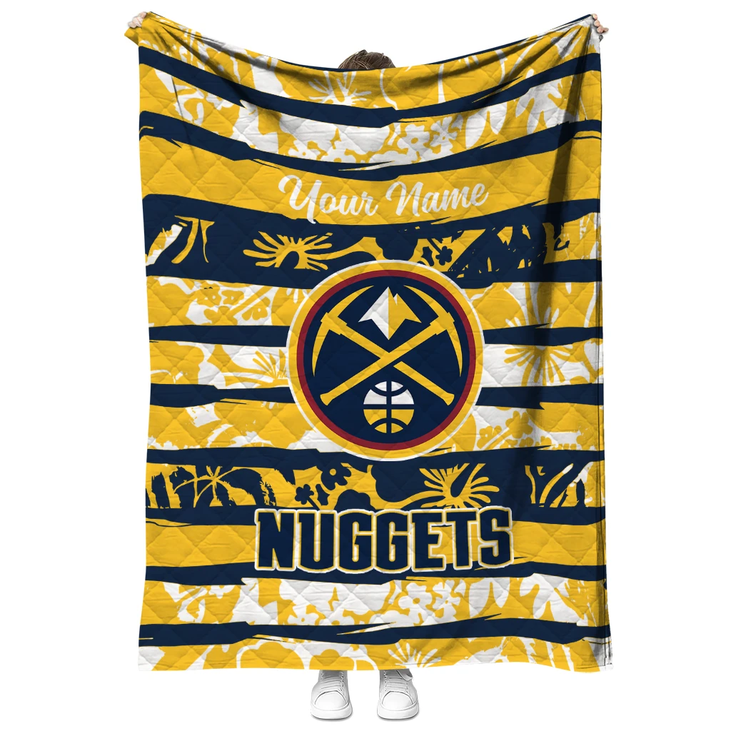 Wrap yourself in warmth and pride with the Custom Denver Nuggets Layered Florals Blue White Quilt Blanket from the Denver Nuggets Blankets collection at Yes That Blanket. Made from 100% premium quilting-weight polyester blended with a touch of microfiber, this quilt offers a smooth, soft finish you’ll love. Choose between two quilting styles—Stipple or Diagonal—and enjoy the comfort of a cotton-filled layer inside that adds extra coziness for every season. The border is available in classic black or white, giving your design a clean, timeless edge.