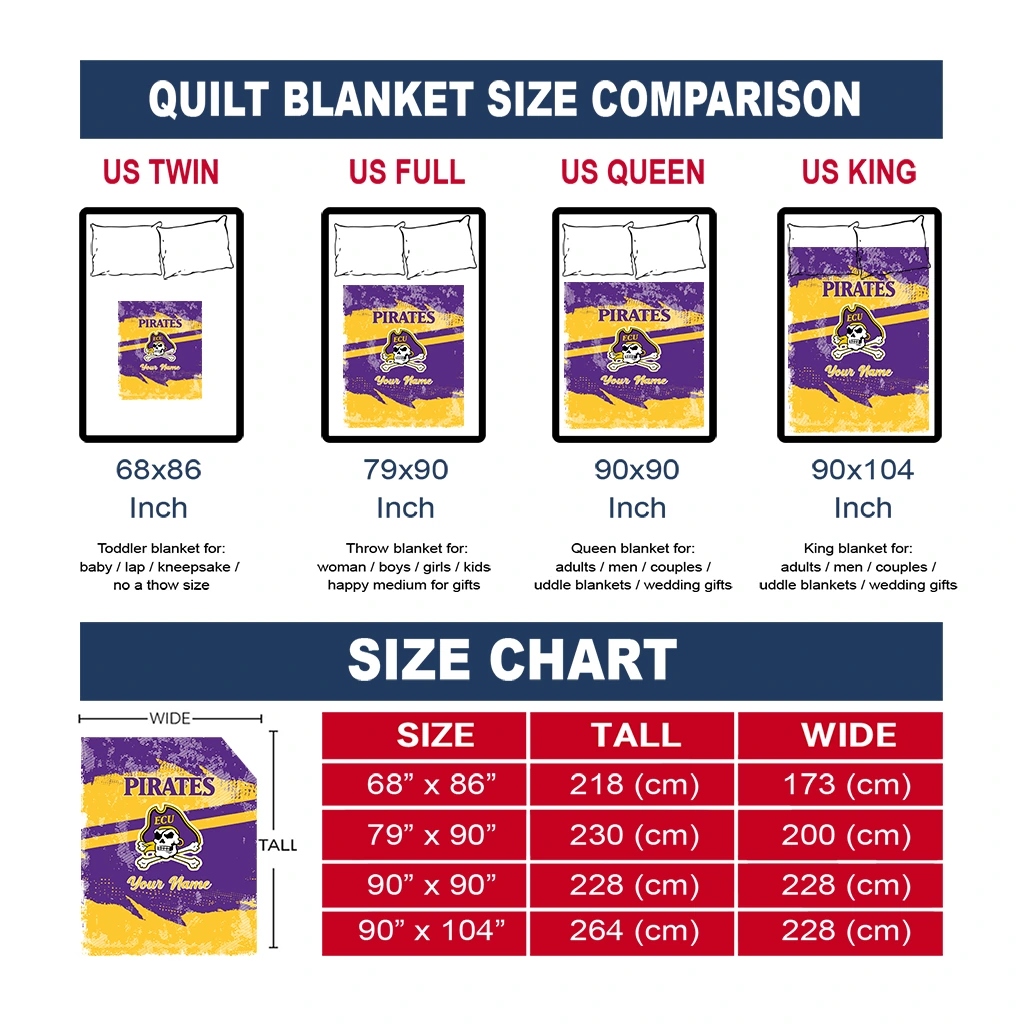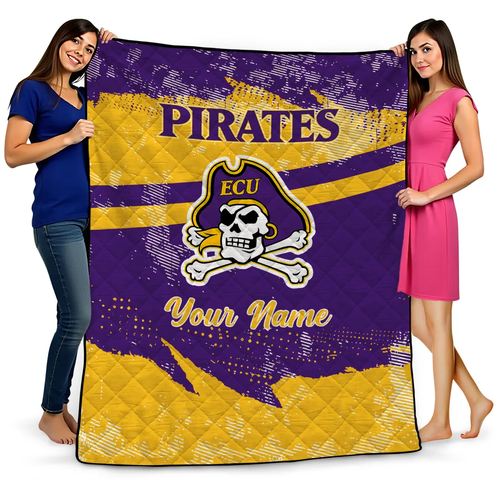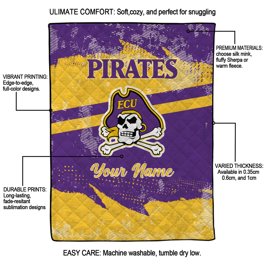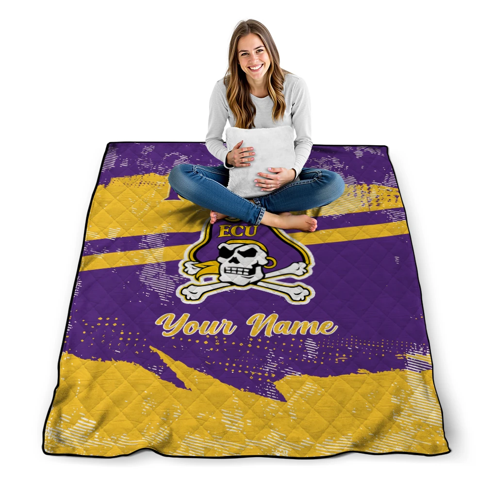 Wrap yourself in warmth and pride with the Custom East Carolina Pirates Brushstroke Layers Purple Quilt Blanket from the East Carolina Pirates Blankets collection at Yes That Blanket. Made from 100% premium quilting-weight polyester blended with a touch of microfiber, this quilt offers a smooth, soft finish you’ll love. Choose between two quilting styles—Stipple or Diagonal—and enjoy the comfort of a cotton-filled layer inside that adds extra coziness for every season. The border is available in classic black or white, giving your design a clean, timeless edge.