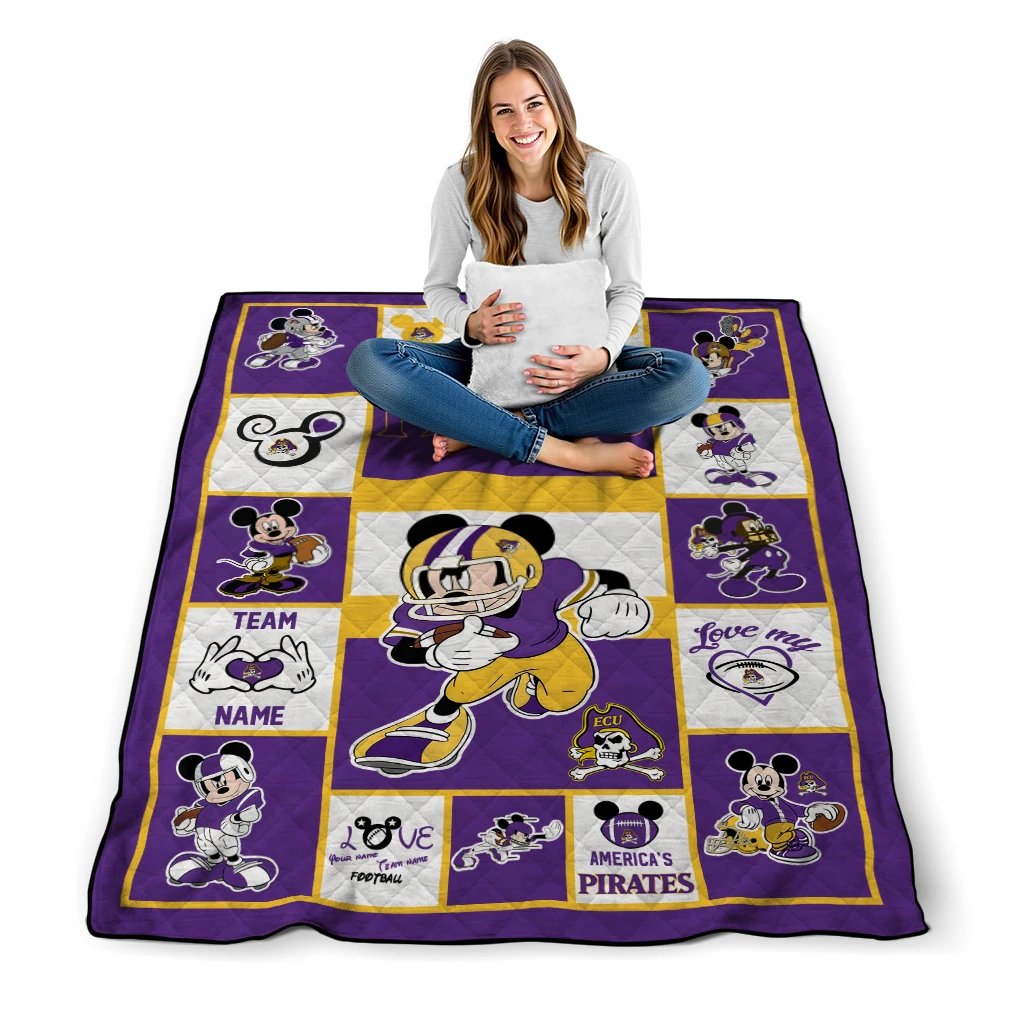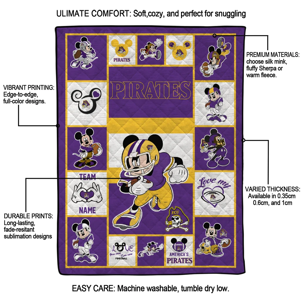The Custom East Carolina Pirates Mickey Crimson Purple White Quilt Blanket is more than a blanket—it’s everyday comfort, thoughtfully made. Crafted from premium quilting fabric with a soft microfiber touch, it offers a smooth hand-feel and lasting coziness. Layered quilting with a cotton-filled core provides adaptable warmth across seasons while maintaining a clean, tailored look on your bed or sofa.