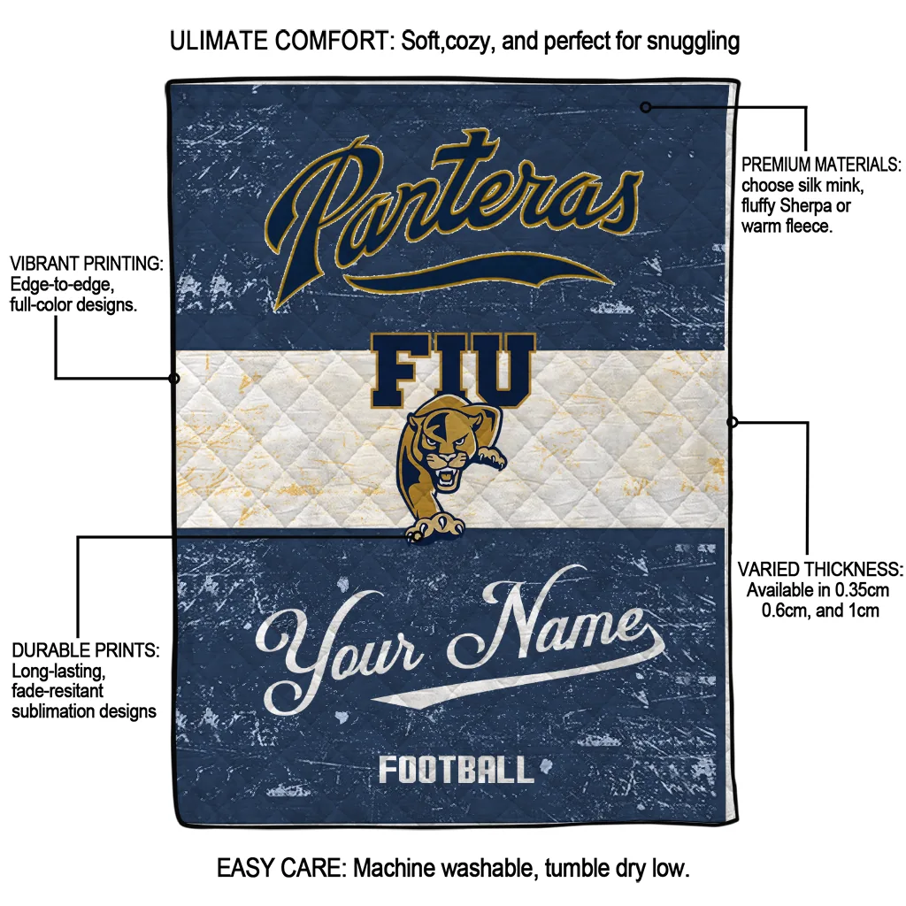 Wrap yourself in warmth and pride with the Custom FIU Panthers Hibiscus Burst Blue White Quilt Blanket from the FIU Panthers Blankets collection at Yes That Blanket. Made from 100% premium quilting-weight polyester blended with a touch of microfiber, this quilt offers a smooth, soft finish you’ll love. Choose between two quilting styles—Stipple or Diagonal—and enjoy the comfort of a cotton-filled layer inside that adds extra coziness for every season. The border is available in classic black or white, giving your design a clean, timeless edge.