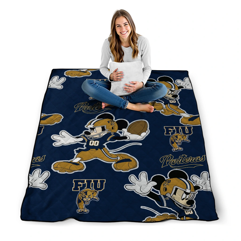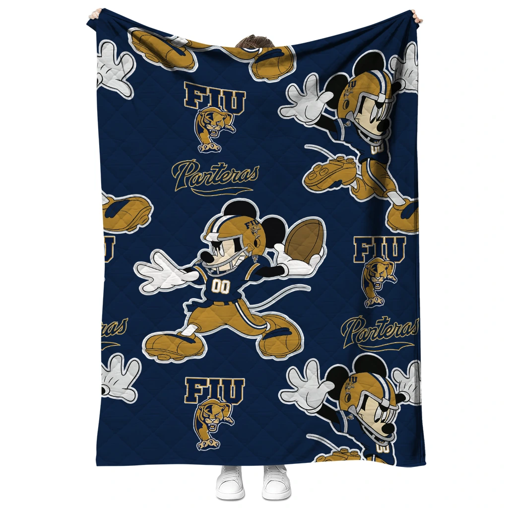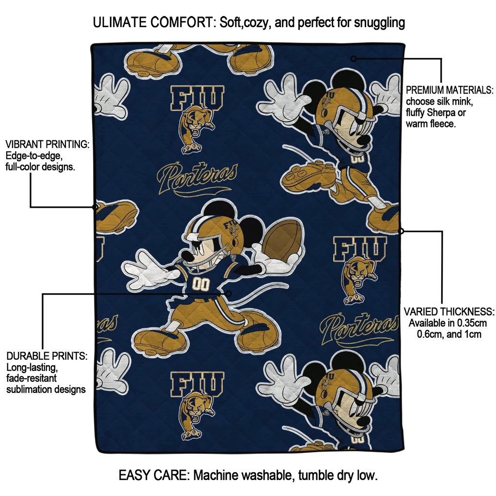 Custom FIU Panthers Mickey Football Blue Quilt Blanket