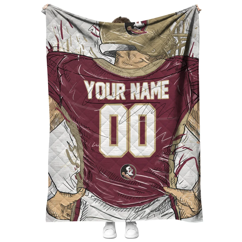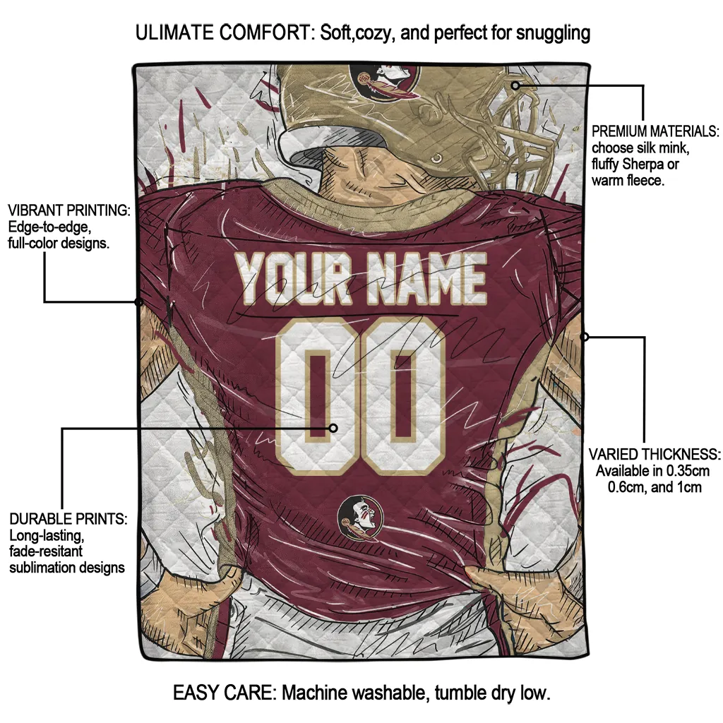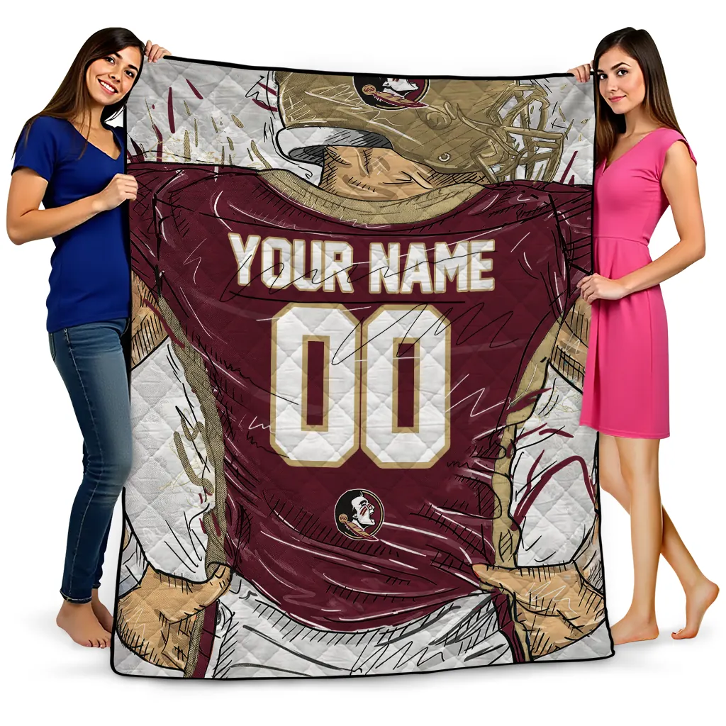 Custom Florida State Seminoles Player Sketch Garnet Gray Quilt Blanket