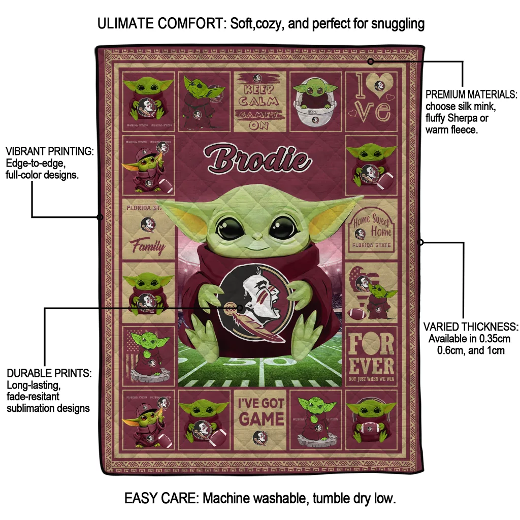 Custom Florida State Seminoles Yody Baby Pattern Garnet Quilt Blanket