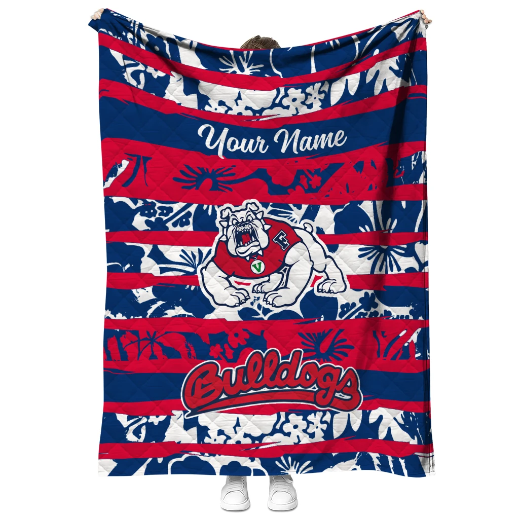 Wrap yourself in warmth and pride with the Custom Fresno State Bulldogs Layered Florals Red White Quilt Blanket from the Fresno State Bulldogs Blankets collection at Yes That Blanket. Made from 100% premium quilting-weight polyester blended with a touch of microfiber, this quilt offers a smooth, soft finish you’ll love. Choose between two quilting styles—Stipple or Diagonal—and enjoy the comfort of a cotton-filled layer inside that adds extra coziness for every season. The border is available in classic black or white, giving your design a clean, timeless edge.