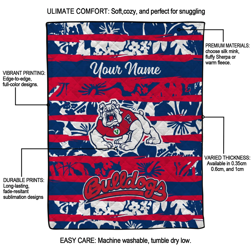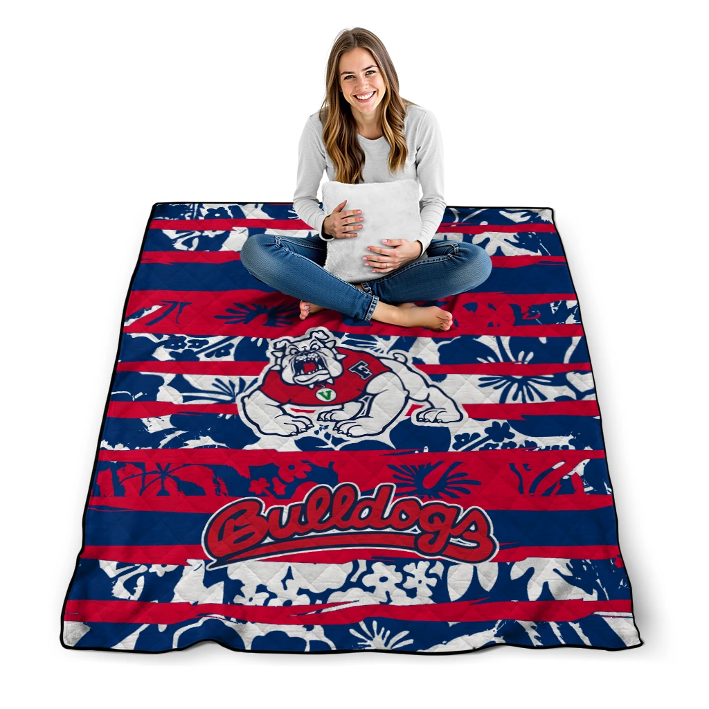 The Custom Fresno State Bulldogs Layered Florals Red White Quilt Blanket is more than a blanket—it’s everyday comfort, thoughtfully made. Crafted from premium quilting fabric with a soft microfiber touch, it offers a smooth hand-feel and lasting coziness. Layered quilting with a cotton-filled core provides adaptable warmth across seasons while maintaining a clean, tailored look on your bed or sofa.