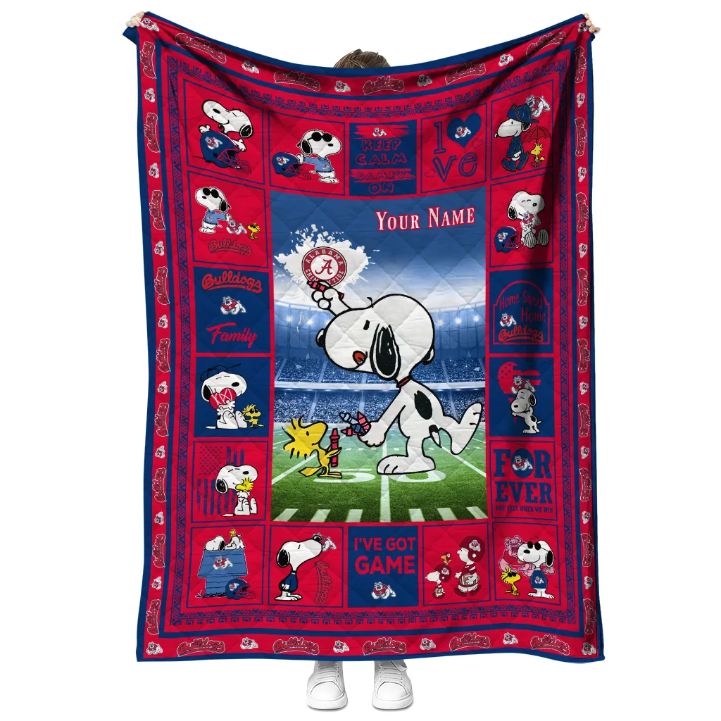 The Custom Fresno State Bulldogs Snoopy Coach Red Quilt Blanket is more than a blanket—it’s everyday comfort, thoughtfully made. Crafted from premium quilting fabric with a soft microfiber touch, it offers a smooth hand-feel and lasting coziness. Layered quilting with a cotton-filled core provides adaptable warmth across seasons while maintaining a clean, tailored look on your bed or sofa.