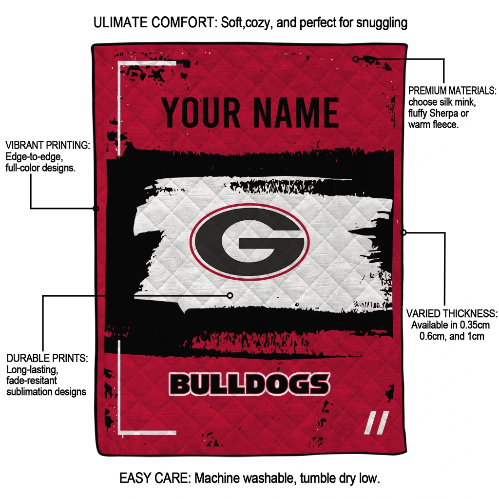 The Custom Georgia Bulldogs Grunge Patch Red White Quilt Blanket is more than a blanket—it’s everyday comfort, thoughtfully made. Crafted from premium quilting fabric with a soft microfiber touch, it offers a smooth hand-feel and lasting coziness. Layered quilting with a cotton-filled core provides adaptable warmth across seasons while maintaining a clean, tailored look on your bed or sofa.