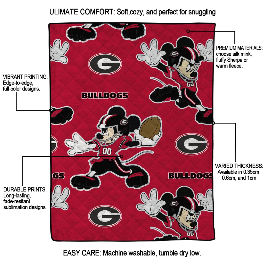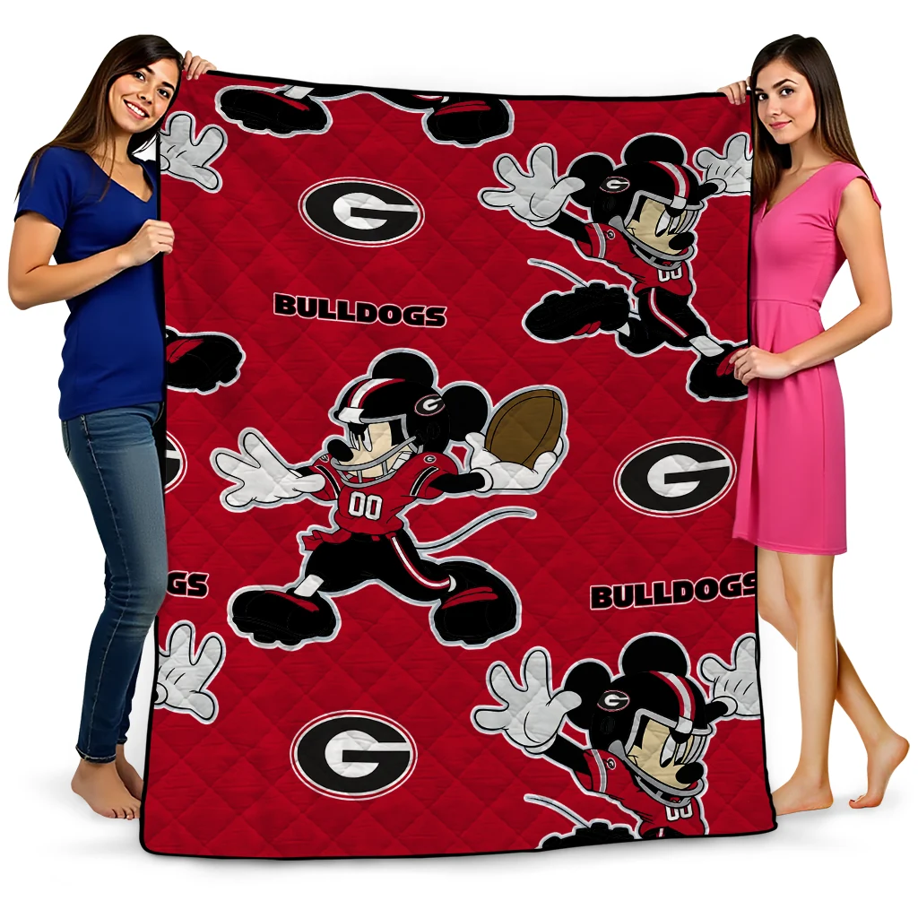 Custom Georgia Bulldogs Mickey Football Red Quilt Blanket