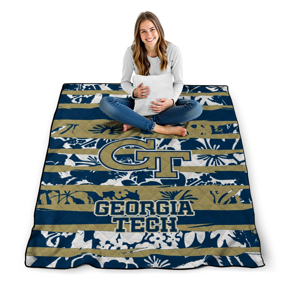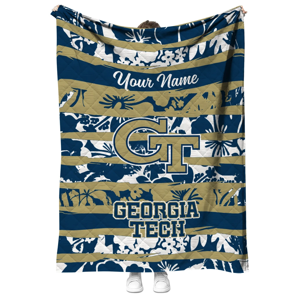 Custom Georgia Tech Yellow Jackets Layered Florals Gold White Quilt Blanket