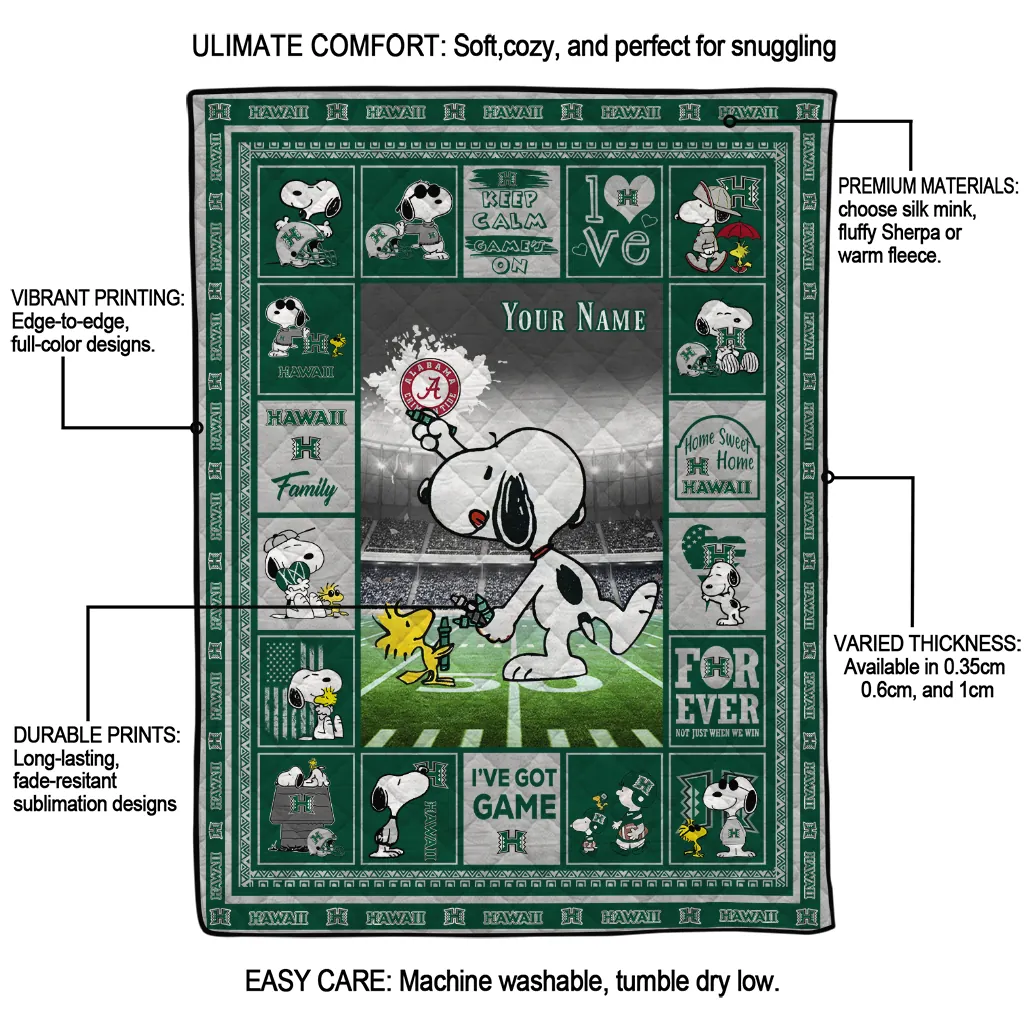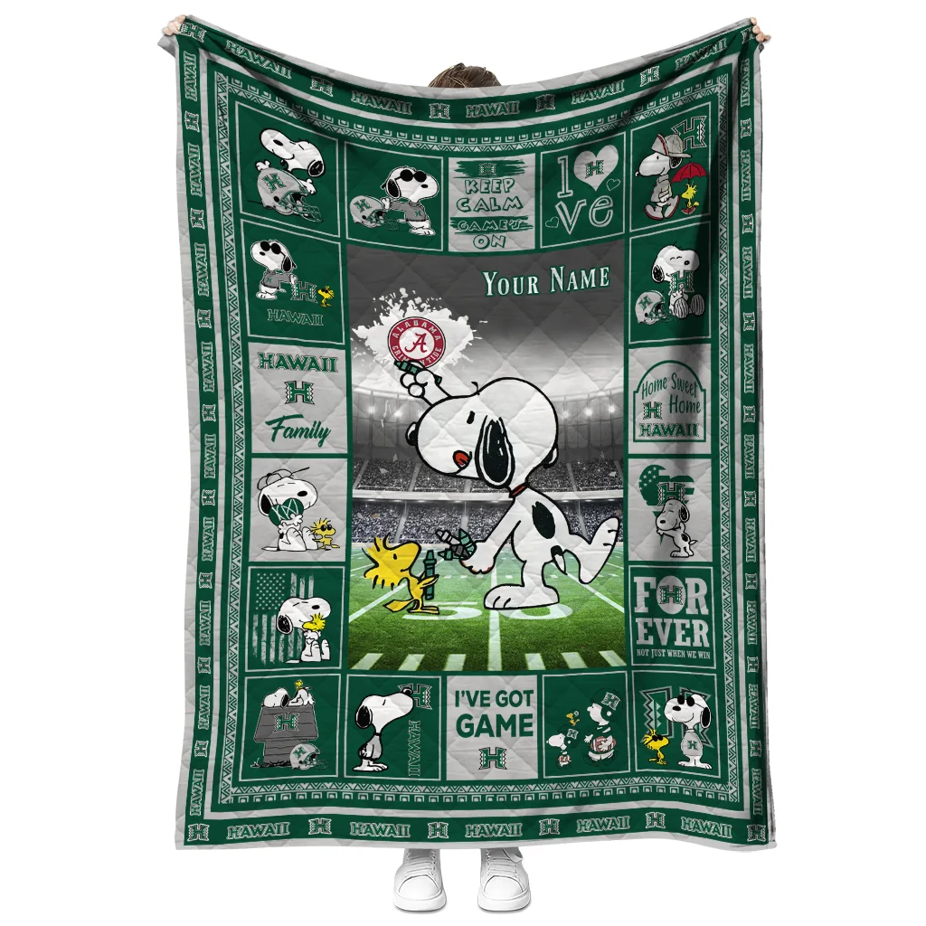 Custom Hawaii Rainbow Warriors Snoopy Coach Green Quilt Blanket