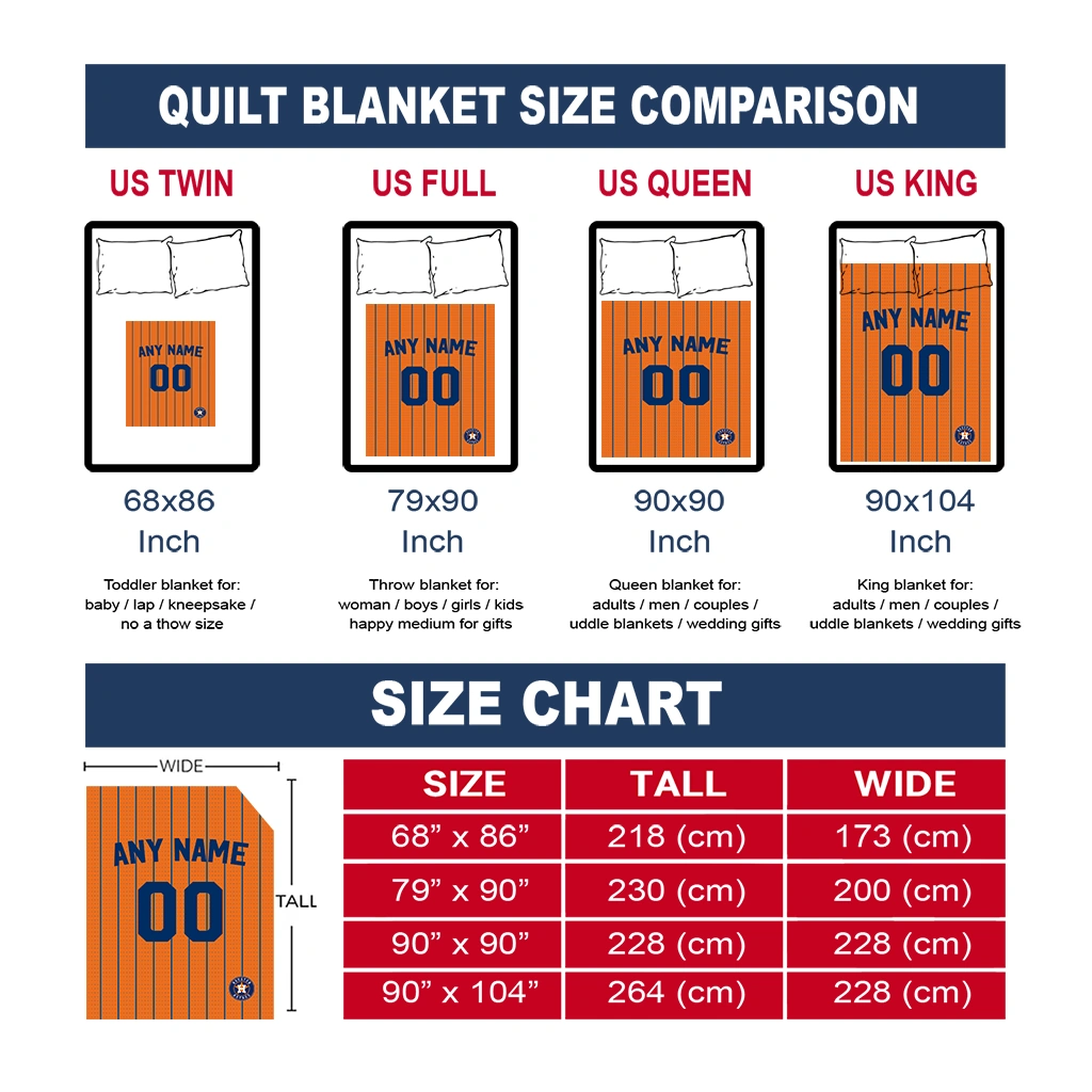 Wrap yourself in warmth and pride with the Custom Houston Astros Pin Dot Quilt Blanket from the Houston Astros Blankets collection at Yes That Blanket. Made from 100% premium quilting-weight polyester blended with a touch of microfiber, this quilt offers a smooth, soft finish you’ll love. Choose between two quilting styles—Stipple or Diagonal—and enjoy the comfort of a cotton-filled layer inside that adds extra coziness for every season. The border is available in classic black or white, giving your design a clean, timeless edge.